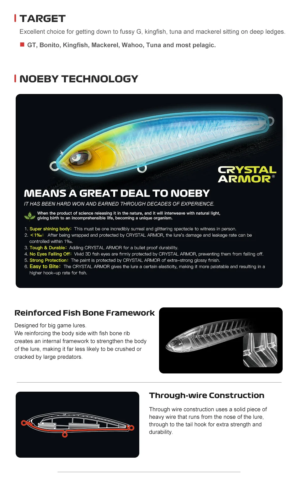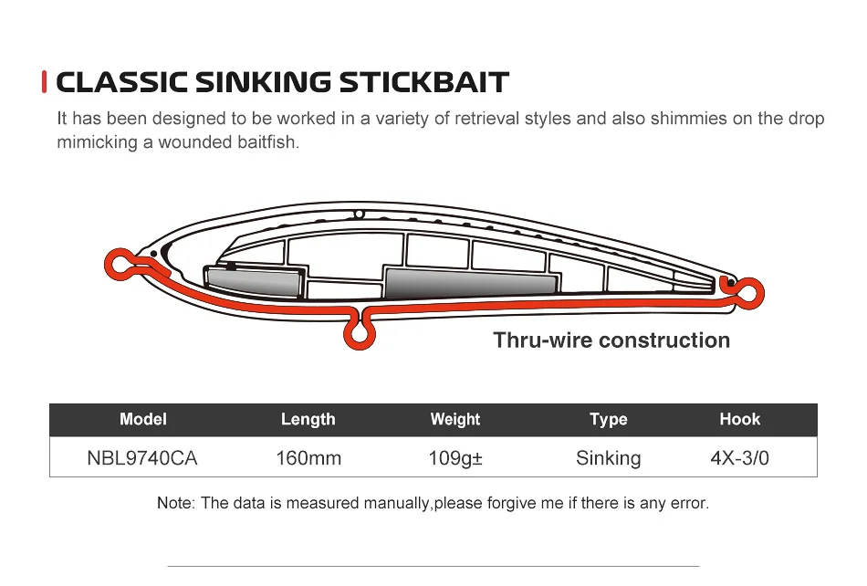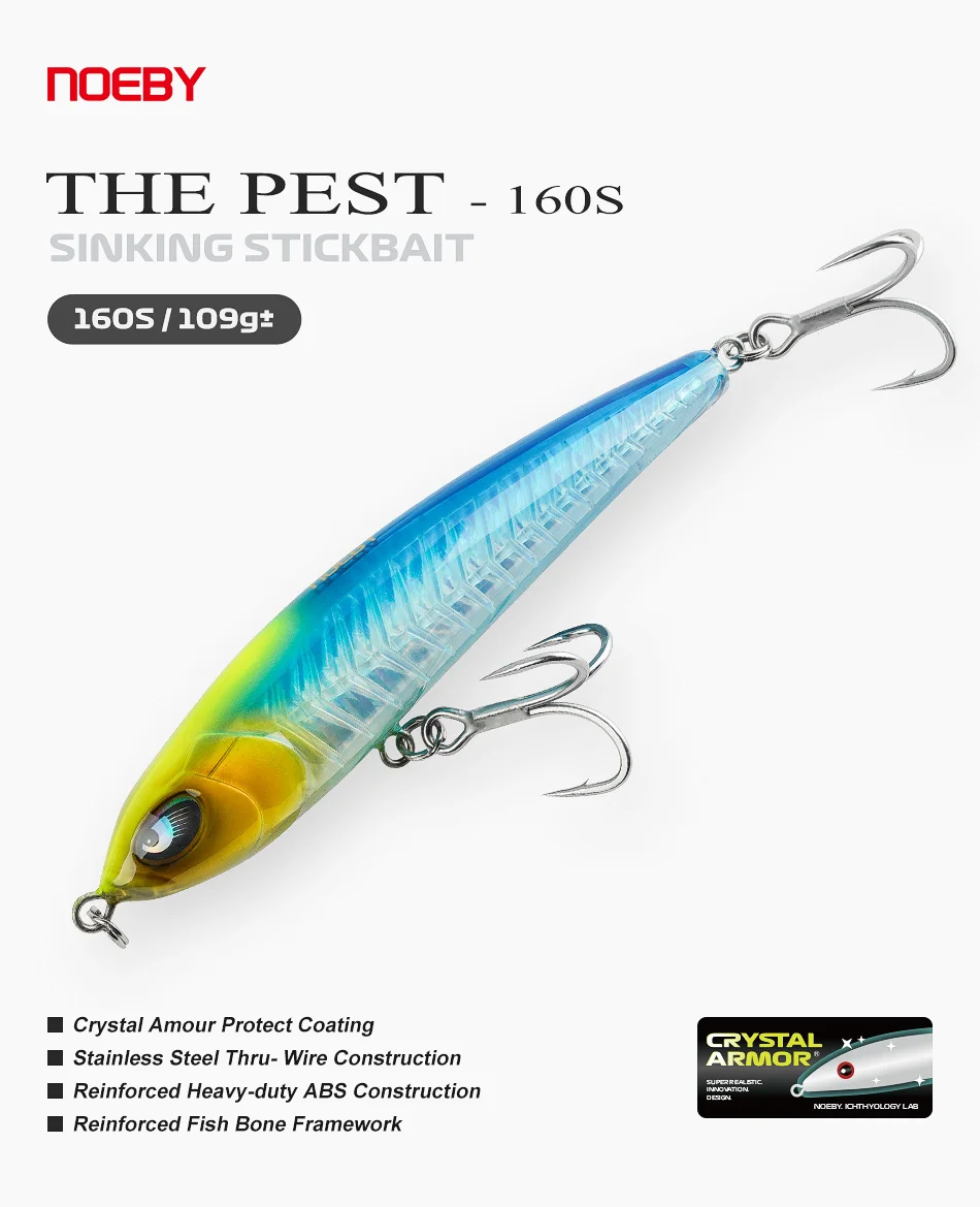 NOEBY The Pest Stickbait 160mm 109g ± armadura de cristal señuelo de pesca hundido juego grande Tuna GT Kingfish señuelos artificiales de agua salada