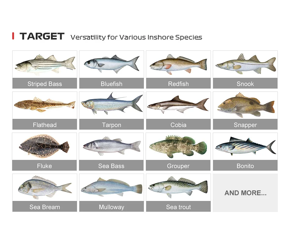 La acción rápida es una combinación perfecta para Bucktail Jig, Softbait Rig, tapones de agua superiores, cebo señuelo y Twitch, cebo en vivo.