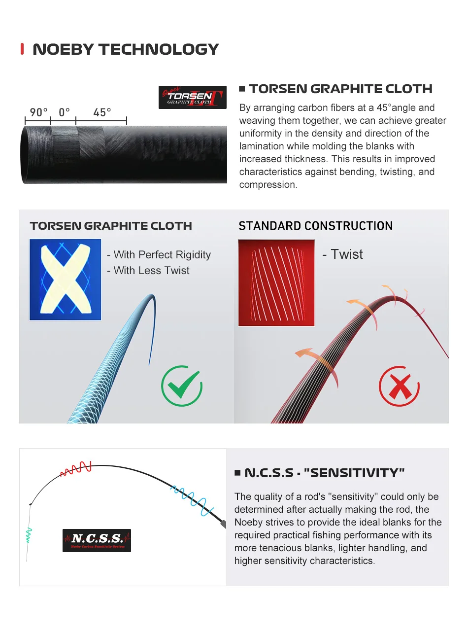 La calidad de la "sensibilidad" de una caña sólo podría determinarse después de hacer la caña, el Noo se esfuerza por proporcionar los espacios en blanco ideales para el rendimiento de pesca práctico requerido con sus espacios en blanco más tenaces, un manejo más liviano y características de mayor sensibilidad.