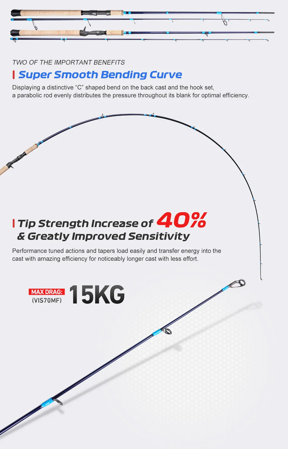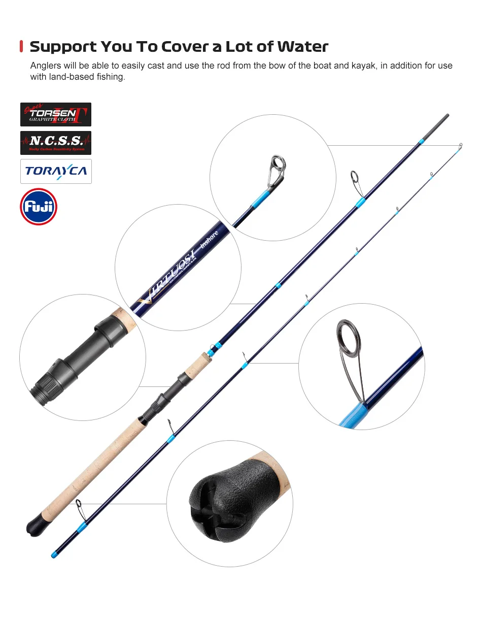 Caña de pescar costera Virtuosi 2,13 m 2,29 m 2 secciones Max Darg 15 kg Fuji Toray Carbon Spinning Casting Barco de mar Caña