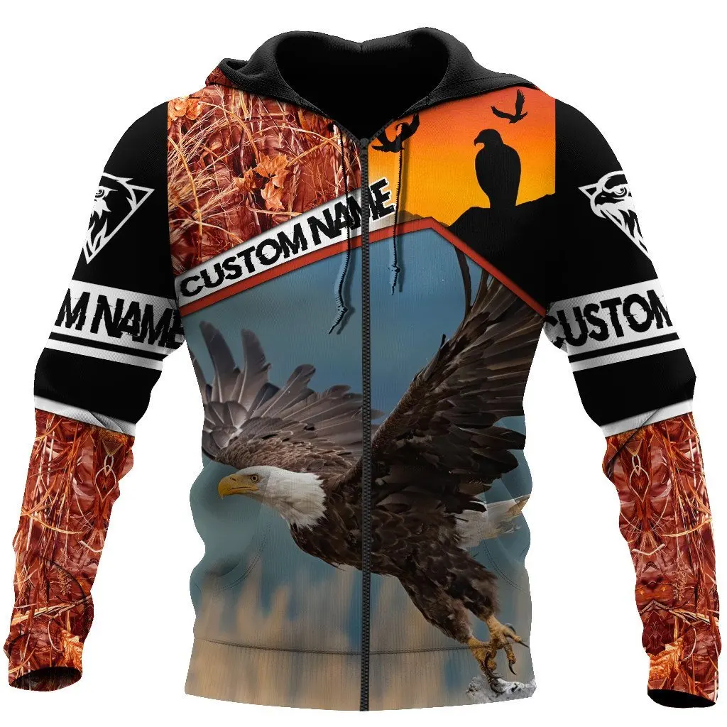 Nombre personalizado Animal amor águila 3D impreso moda hombres otoño Sudadera con capucha ropa de calle Unisex Casual chaqueta con cremallera pulóver KJ517 - imagen 1