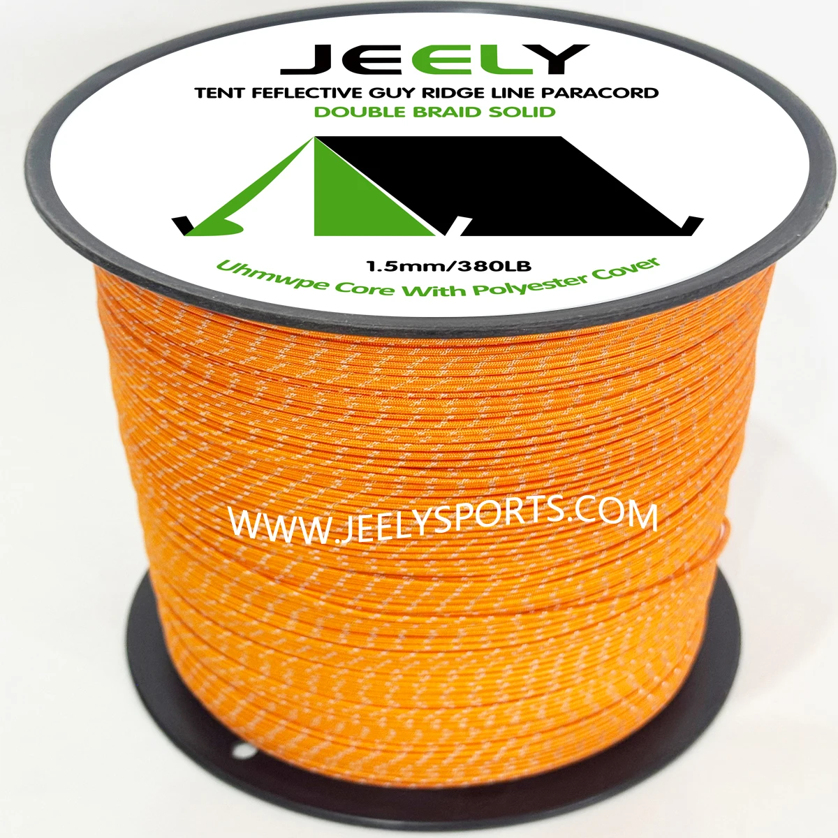 Núcleo UHMWPE de 20m, 1,5mm y 380lb, con cuerda de chaqueta de poliéster, trazadores reflectantes, línea Guy para tienda, cordón de hamaca