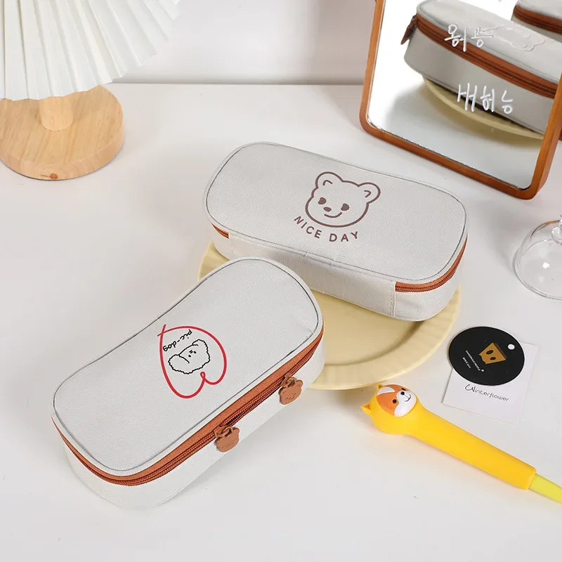 Nueva bolsa de lápices de gran capacidad, bolsa de papelería de lona sencilla y creativa en el día, estuche de lápices para escuela primaria para niña, estuche de lápices para niño