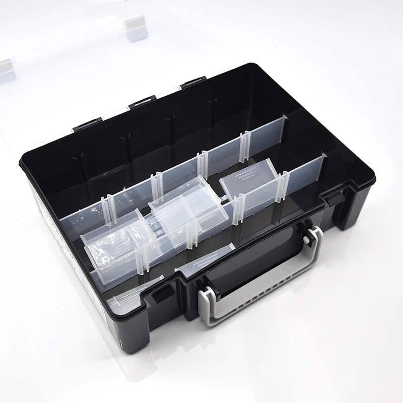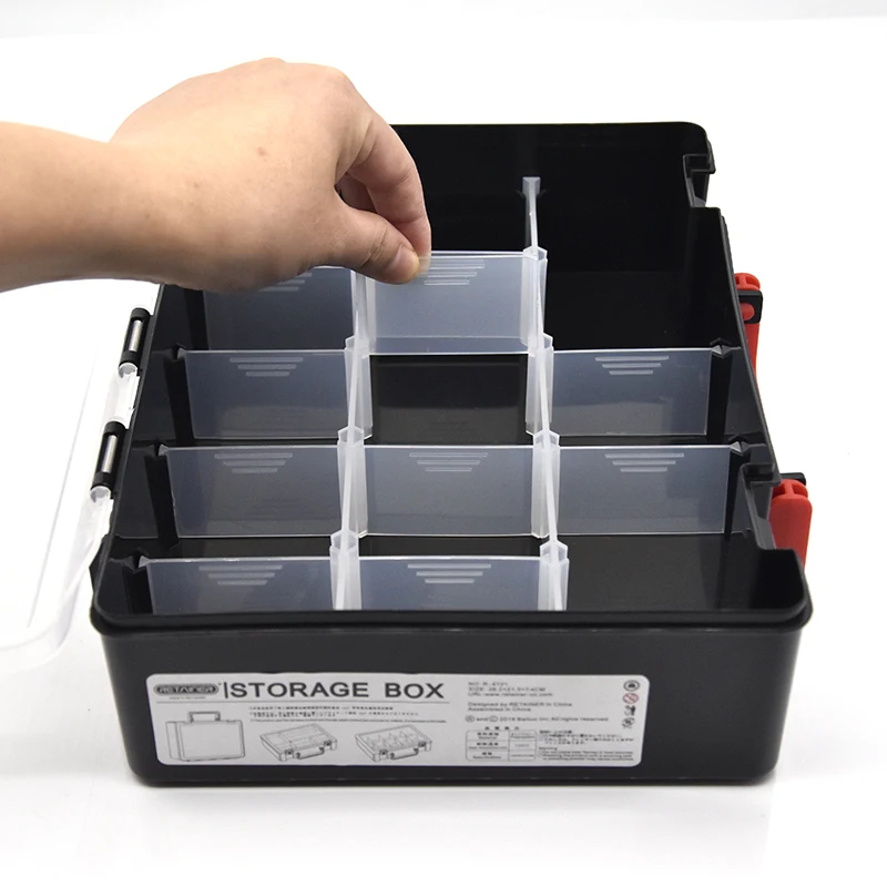 3. La caja de aparejos de pesca tiene 6 combinaciones de colores.Las imágenes de tamaño están claramente marcadas, la capa superior de la caja no se puede mover y la capa inferior se puede desmontar y combinar.por favor revise cuidadosamente.