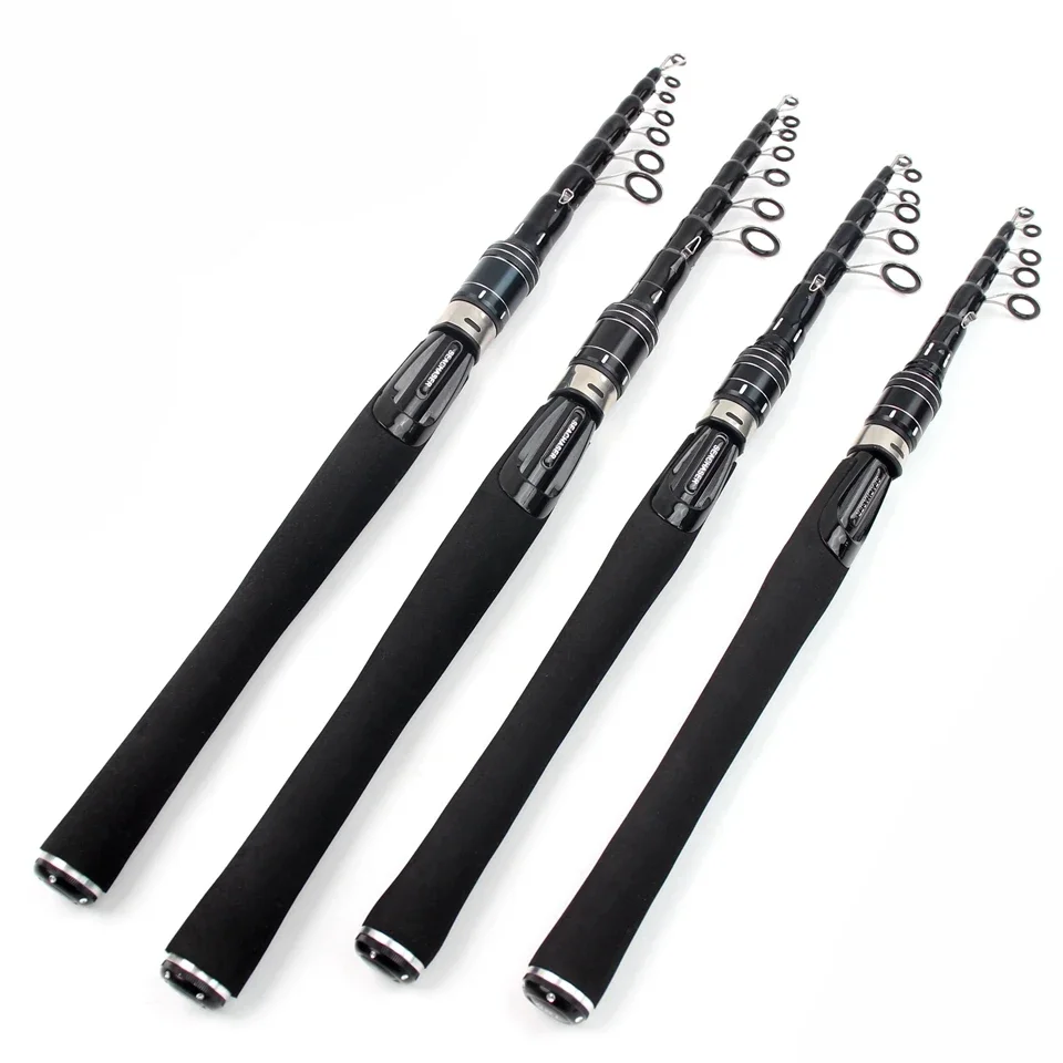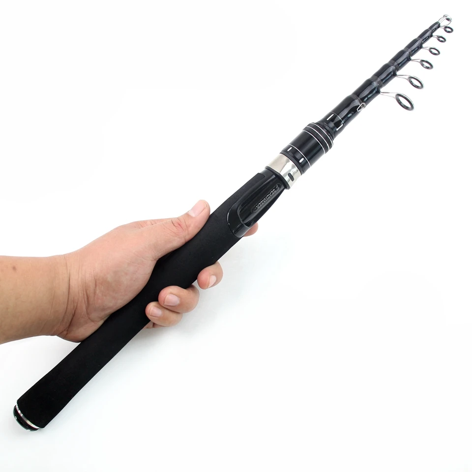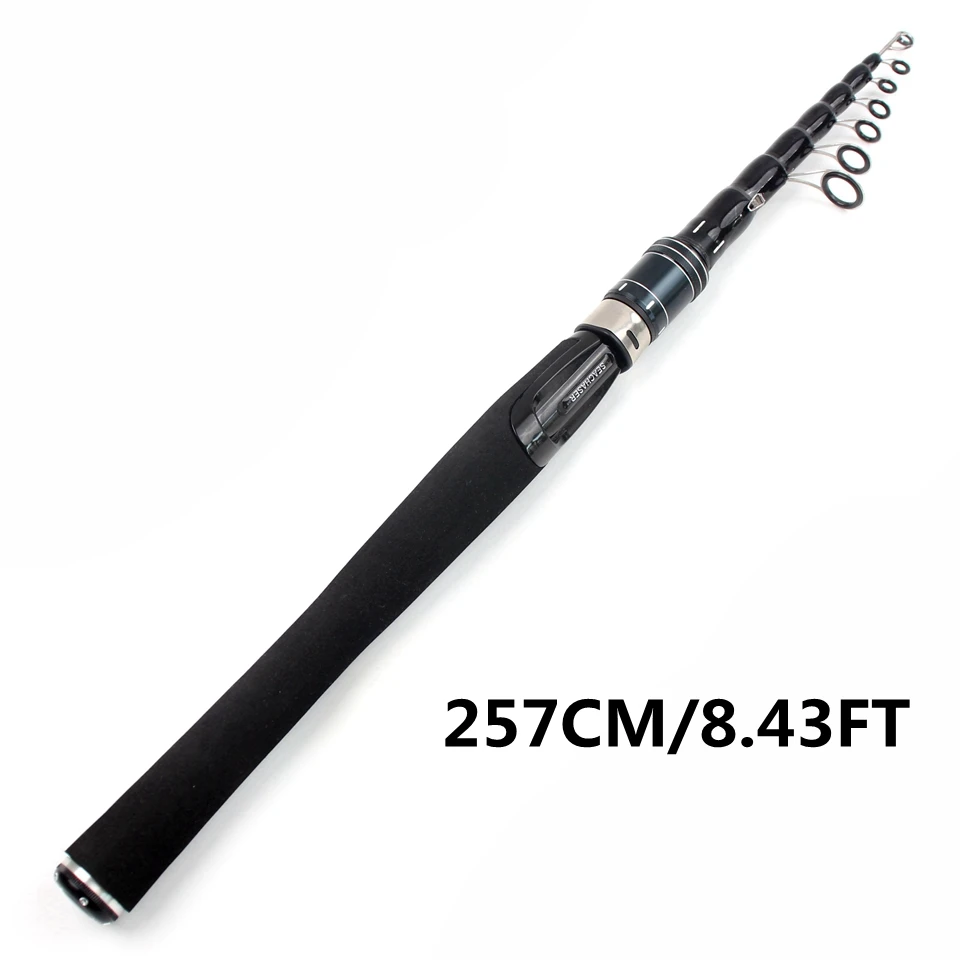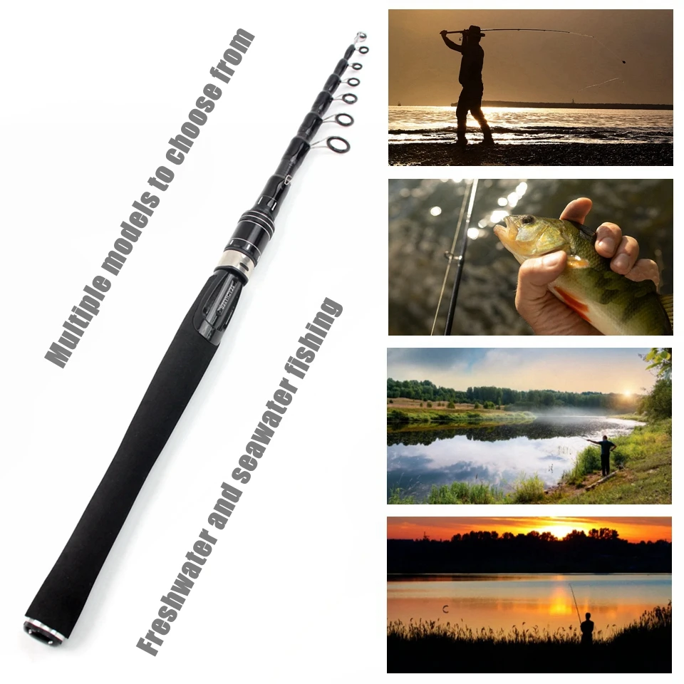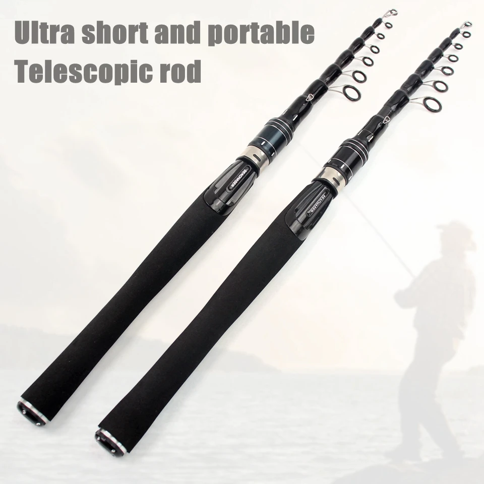 Nueva caña de pescar de fibra de carbono de 2,1 M, 2,4 M, 2,7 M, caña giratoria portátil de bolsillo súper corta, caña de pescar telescópica para carpa, trucha y playa