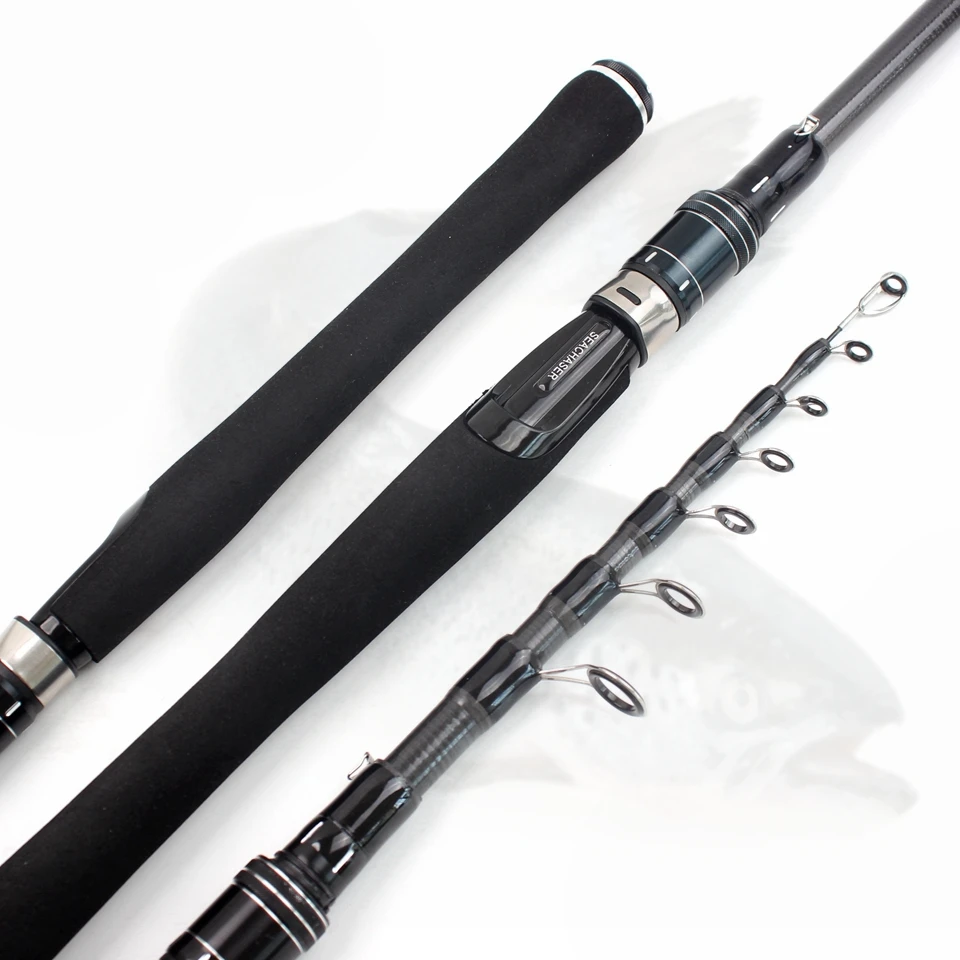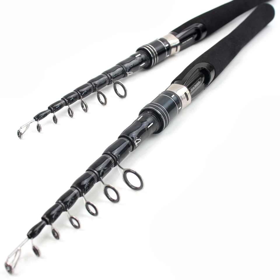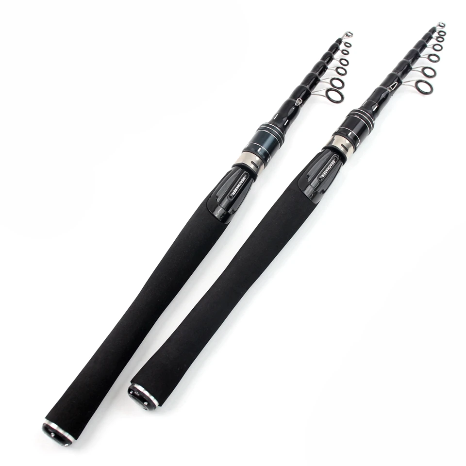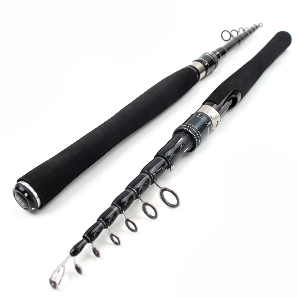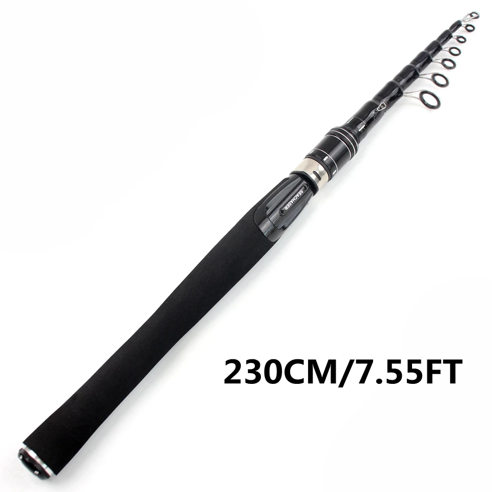 Nueva caña de pescar de fibra de carbono de 2,1 M, 2,4 M, 2,7 M, caña giratoria portátil de bolsillo súper corta, caña de pescar telescópica para carpa, trucha y playa