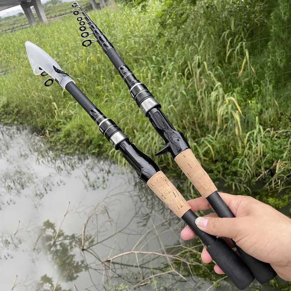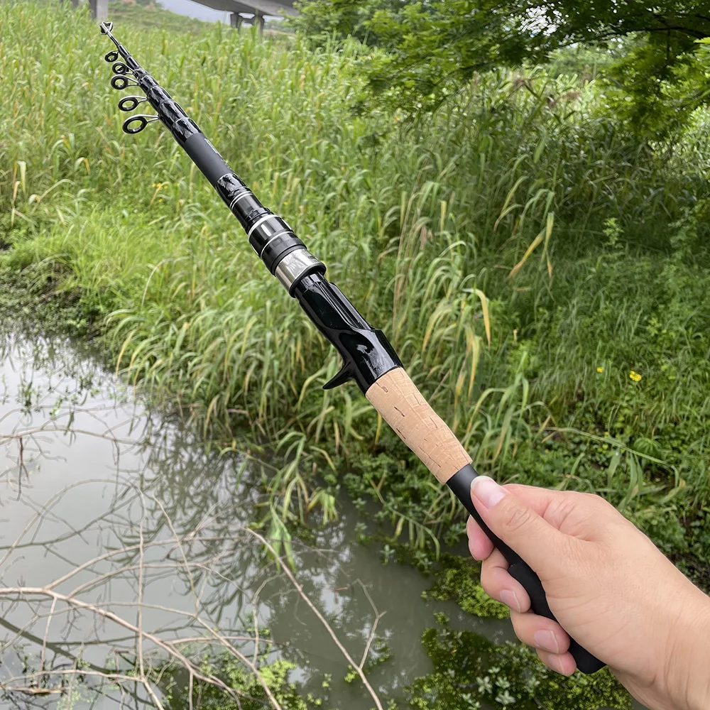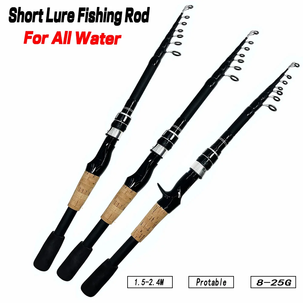 Nuevo señuelo de carbono, caña de pescar giratoria, caña de pescar telescópica Ultra portátil rápida, accesorios de pesca de 1,5-2.4m