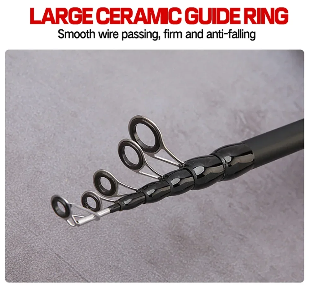 3.Los anillos guía de cerámica de alta calidad minimizan la fricción de la línea, disipan el calor de manera eficiente y brindan lanzamientos suaves al recuperarse.