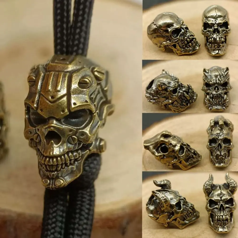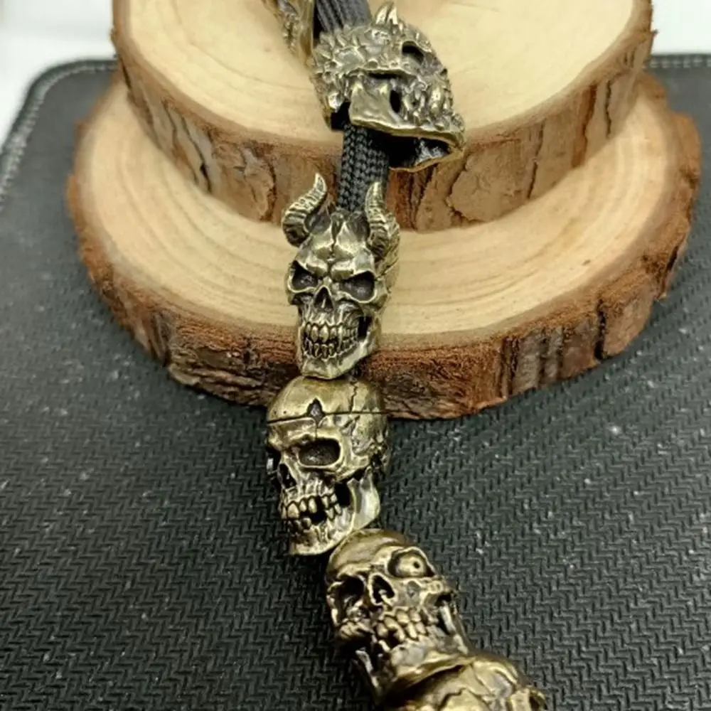 Artículo: colgante de cordón de pulsera hecho a mano con cuentas de Paracord de latón con cabeza de calavera Retro