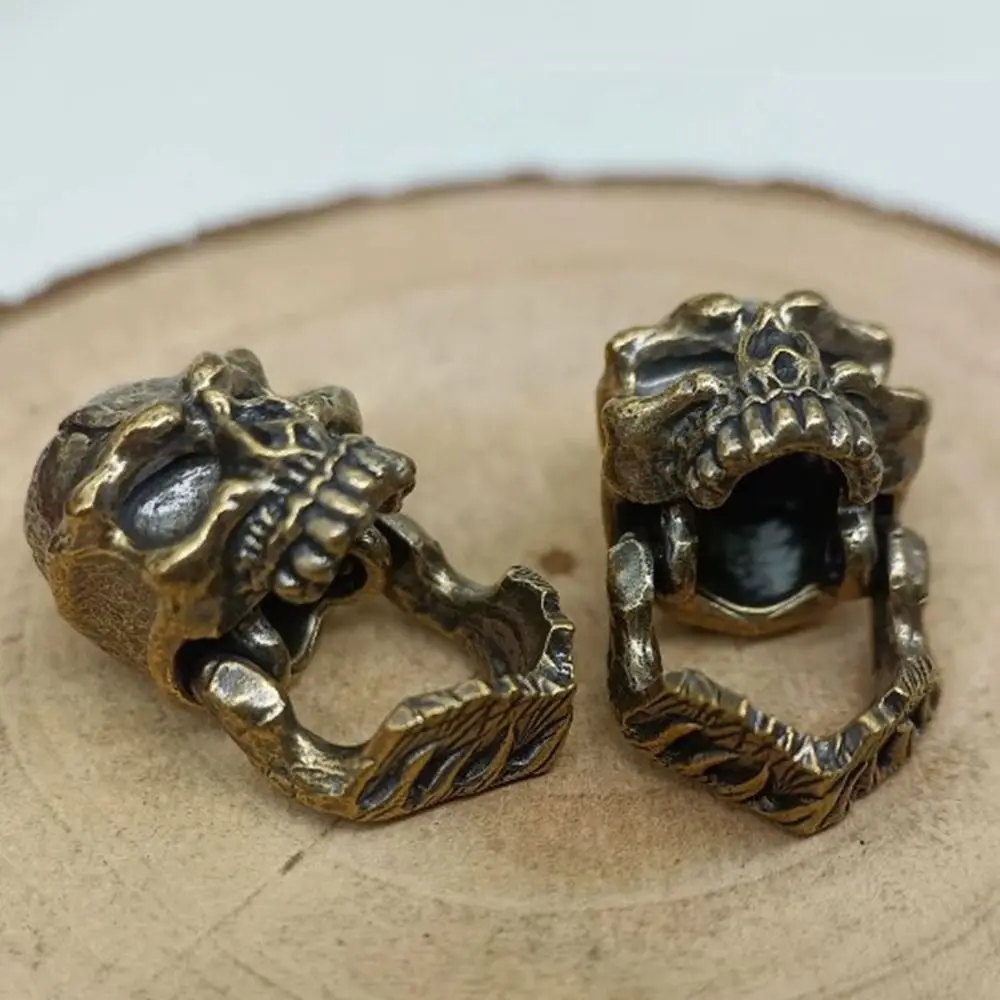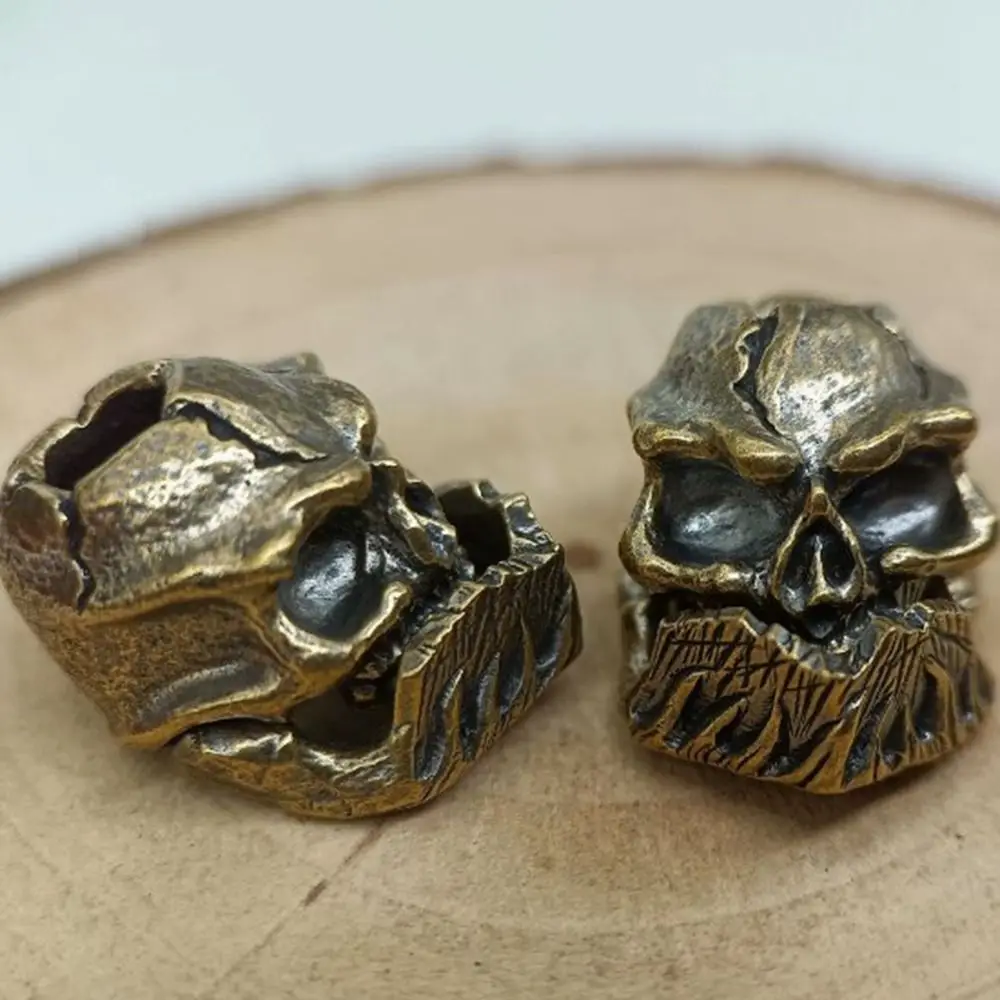 1pc Retro Skull Head Brass Paracord Bead DIY Handmade Bracelet Lanyard Pendant