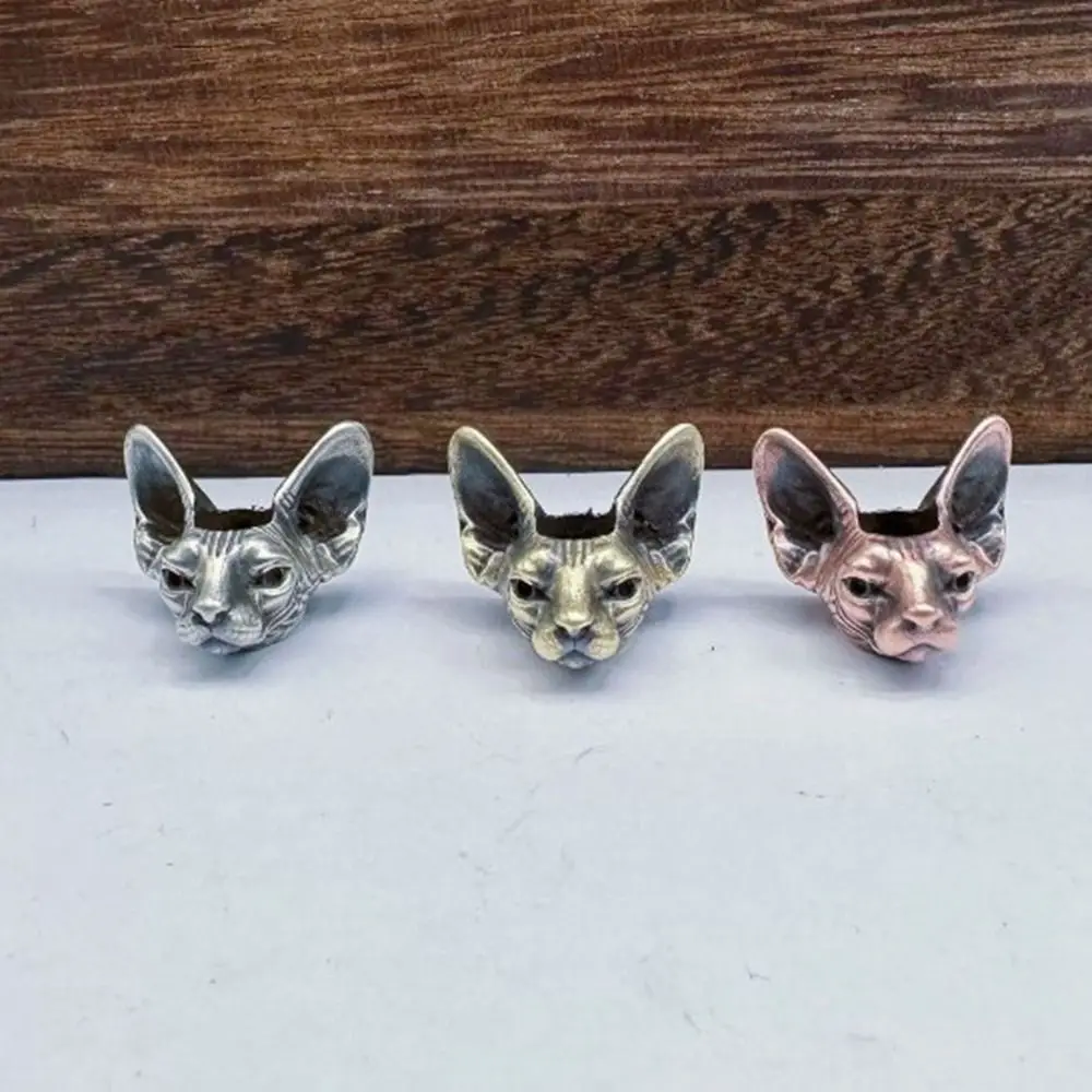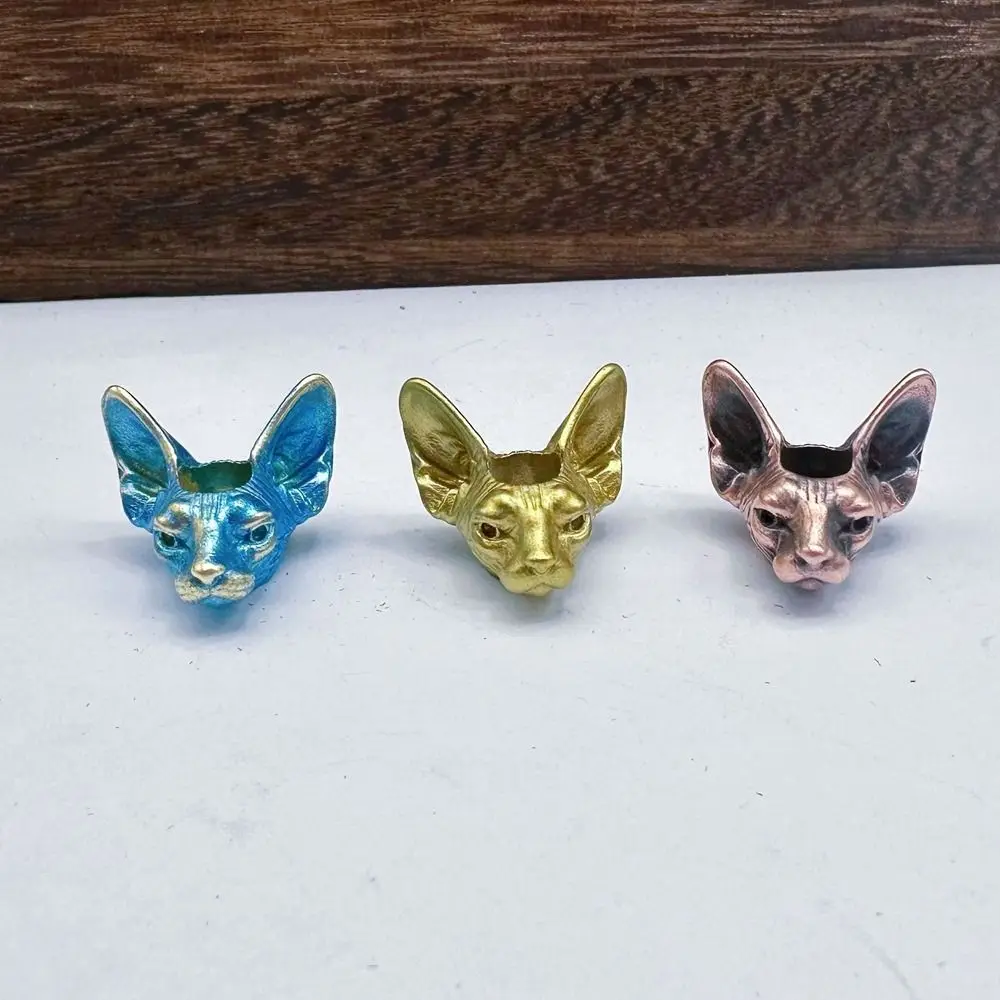 1pc Animal Cat Elephant Head Sculpture Brass Paracord Bead