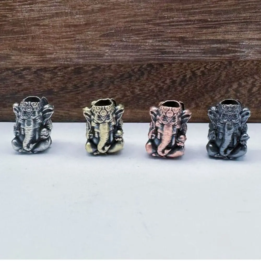Item: Animal Cat Elephant Head Sculpture Brass Paracord Bead