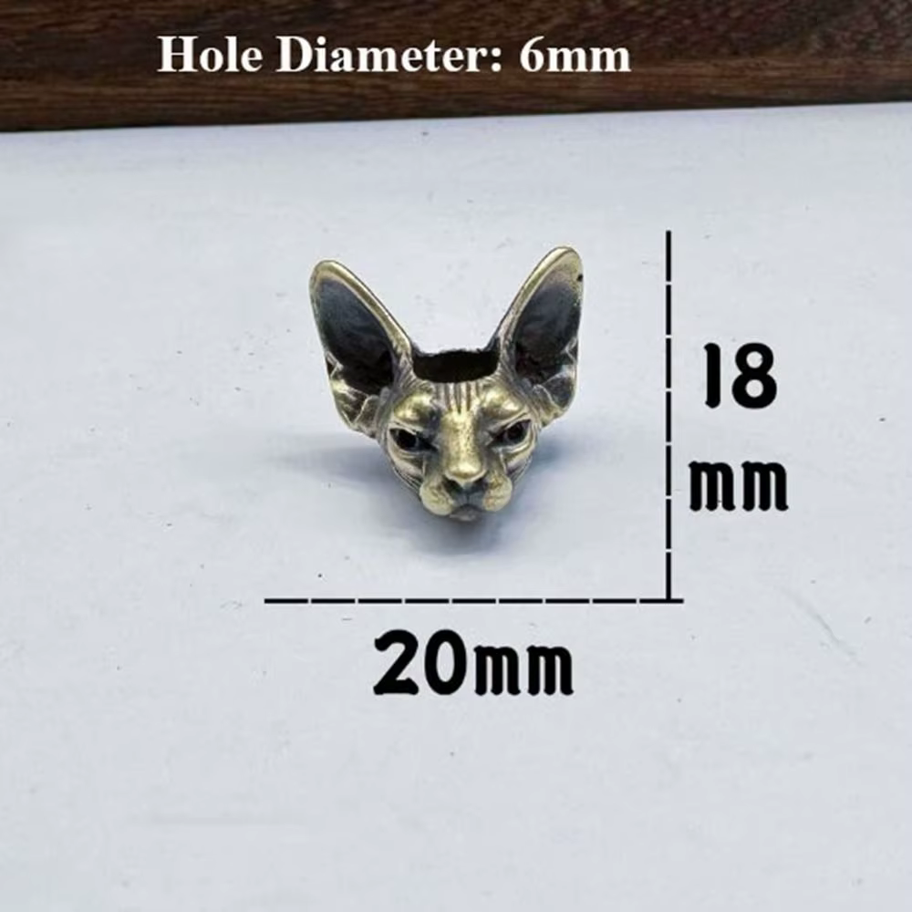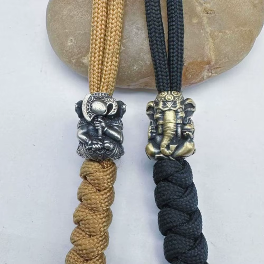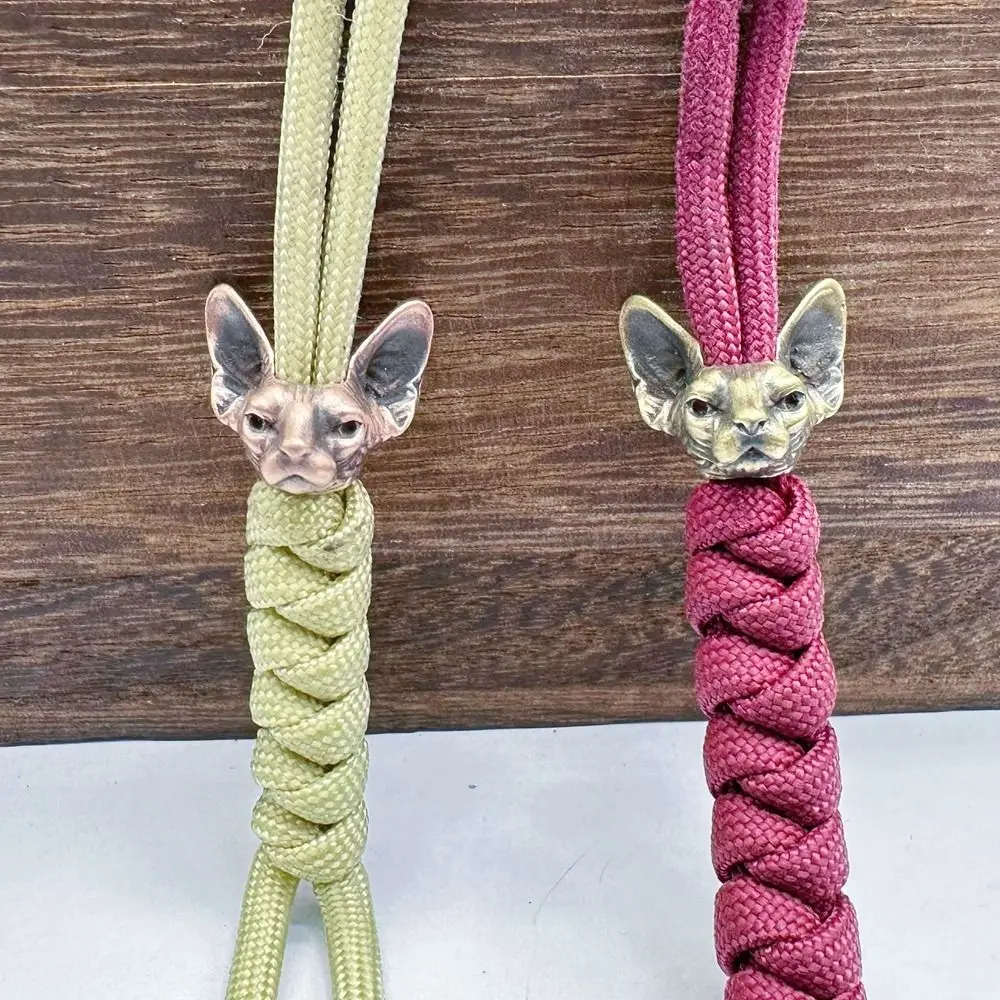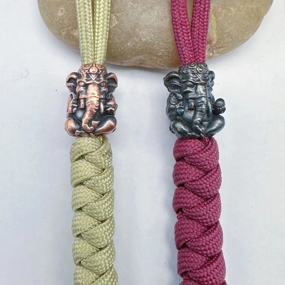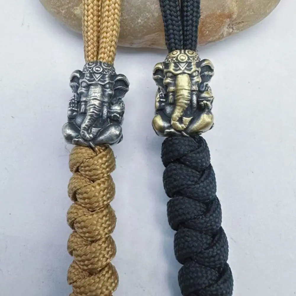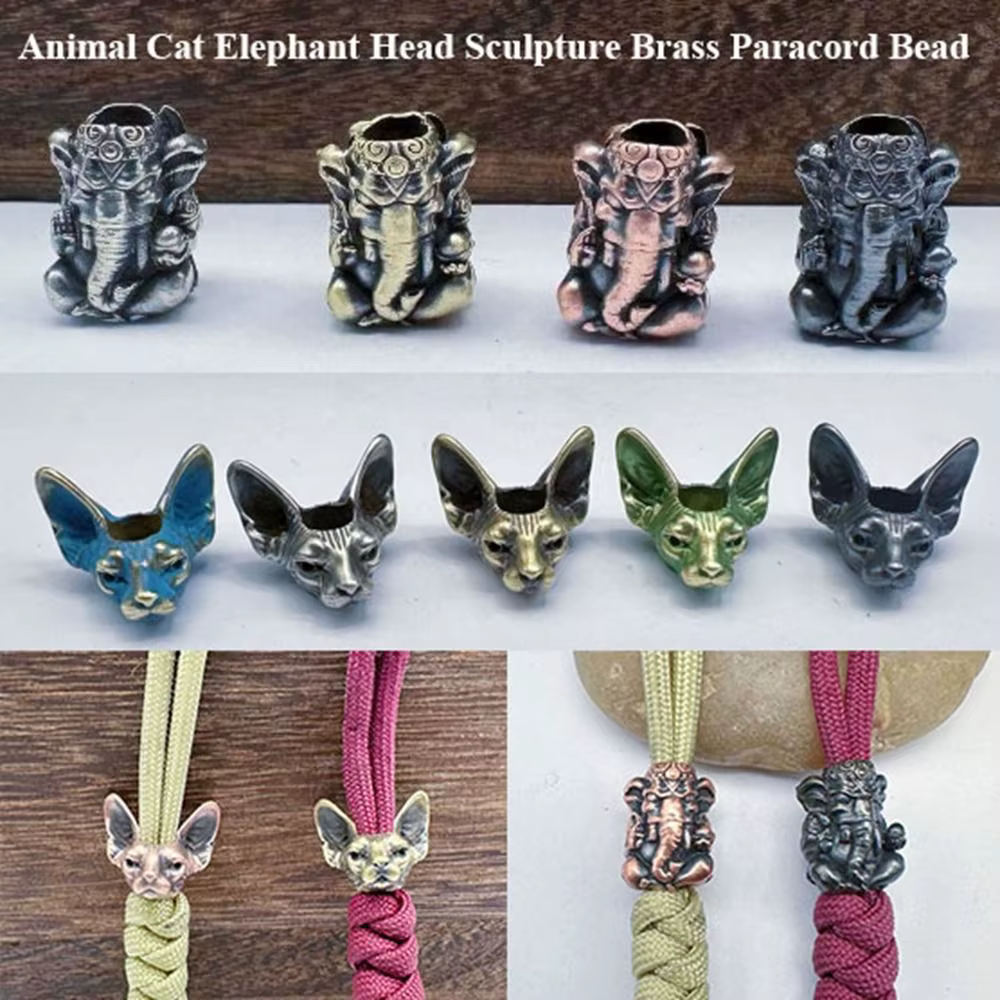 Artículo: Perla de paracord de latón con escultura de cabeza de elefante y gato animal