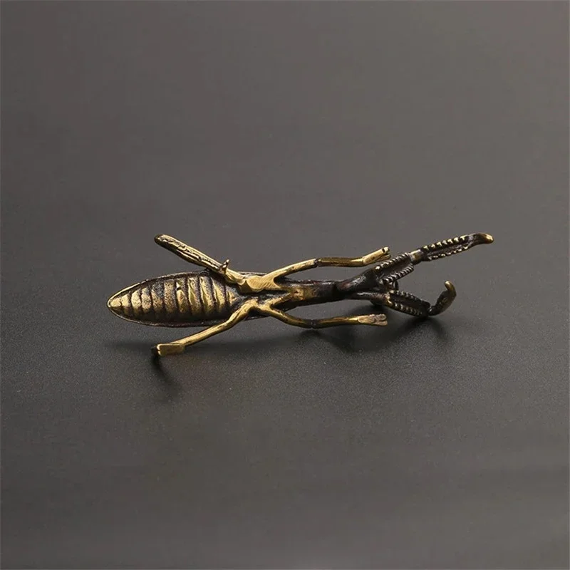 Nueva estatua de mantis de latón, decoración de oficina de cobre puro en miniatura, figuritas de cobre puro Retro, estatuilla de latón Vintage de alta calidad