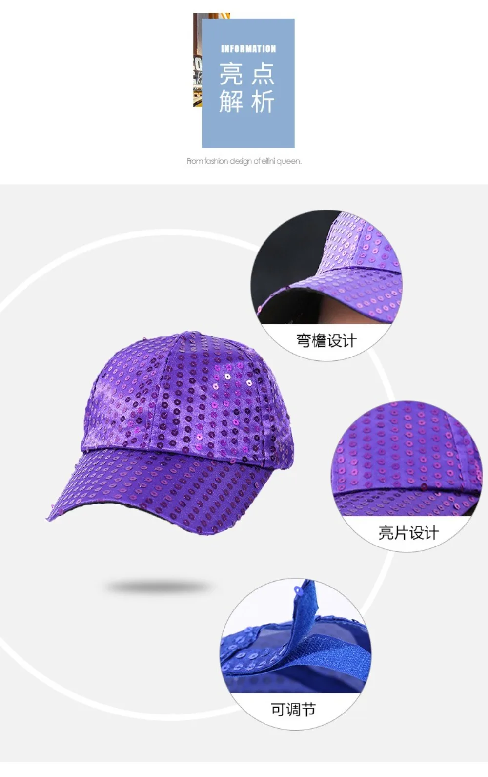 Material: Polyester fiber Package: 1PC Sequined Baseball Cap