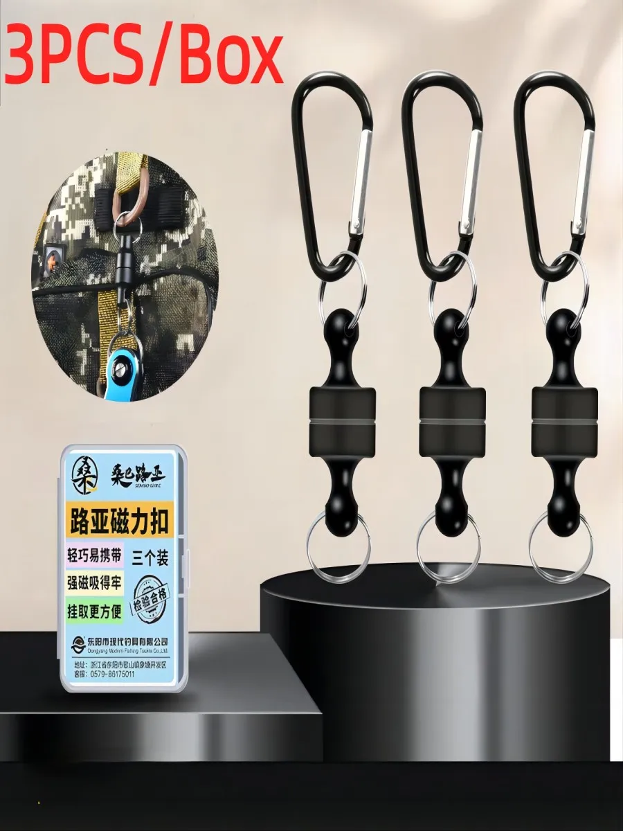 Nueva hebilla de pesca con mosca magnética fuerte multifuncional portátil de liberación rápida, 3 unids/caja, ganchos de mosquetón a presión, hebilla de pesca