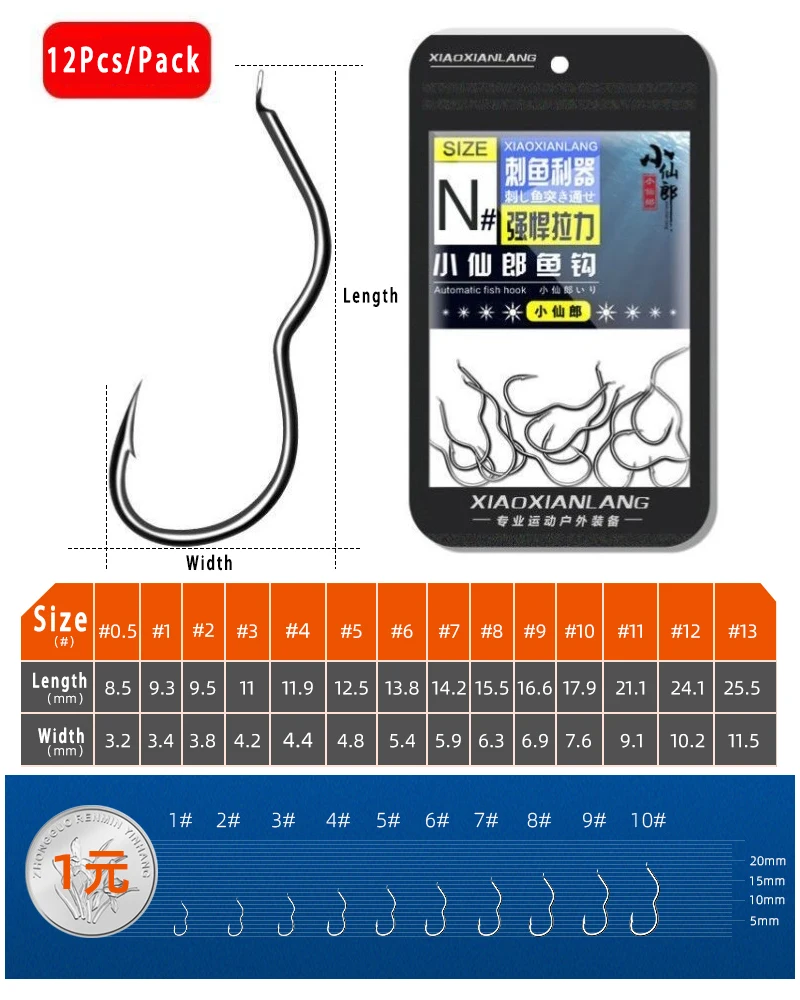 Los peces tienen la costumbre de tragar y escupir anzuelos repetidamente para probar el peligro, y la presente invención está desarrollada para peces a los que les gusta escupir anzuelos.Esquinas redondeadas de doble ancho, entrada plana del anzuelo, el anzuelo se voltea automáticamente cuando el pez cierra y abre la boca, de modo que la punta del anzuelo pueda penetrar la boca del pez, logrando así un apuñalamiento automático del pez.