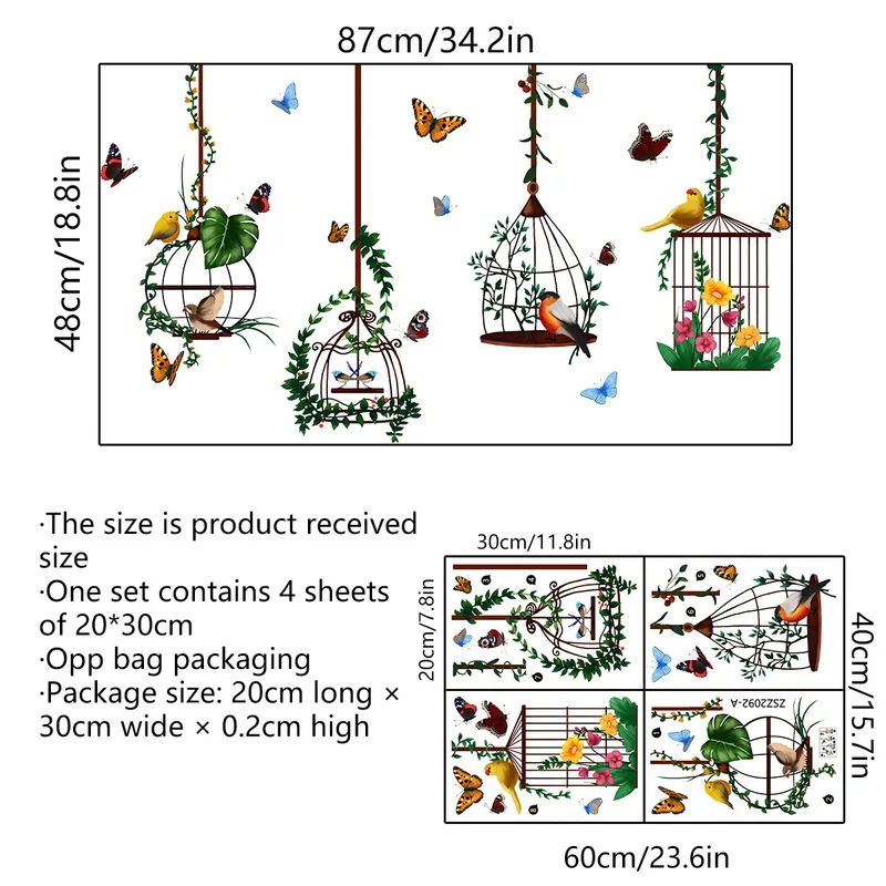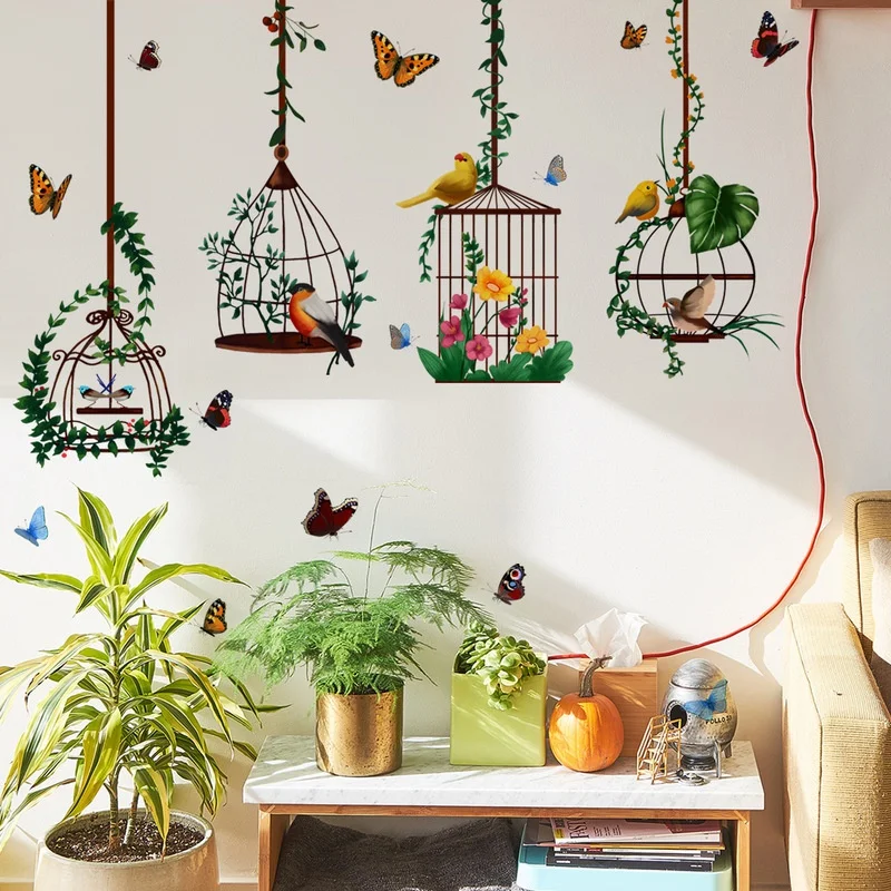 Nueva jaula de pájaro de mariposa pegatinas creativas de decoración de pared sala de estar dormitorio fondo de pared pegatinas de pared extraíbles