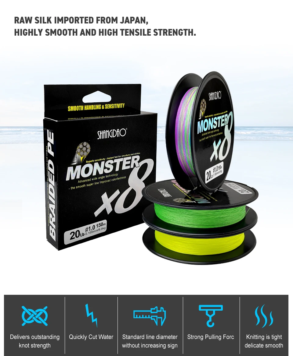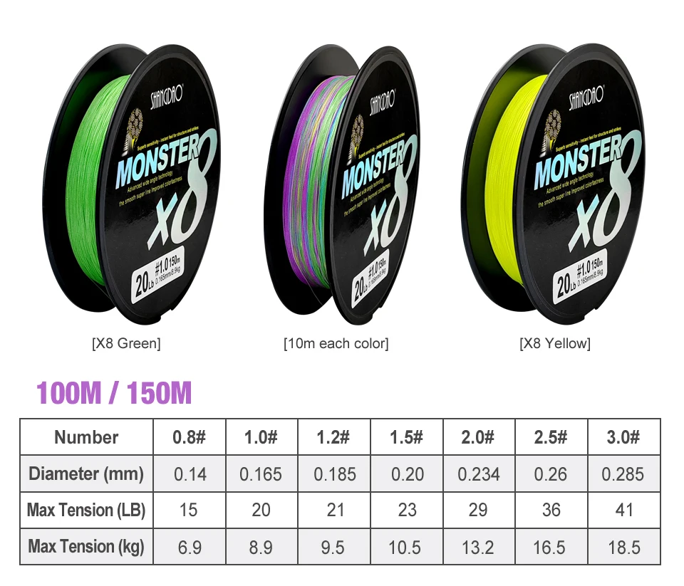 Nueva línea de pesca x8 100M 150M PE tejido fuerte 8 hebras cordón trenzado japonés para alambre de pesca línea multifilamento accesorios de carpa
