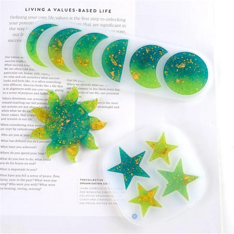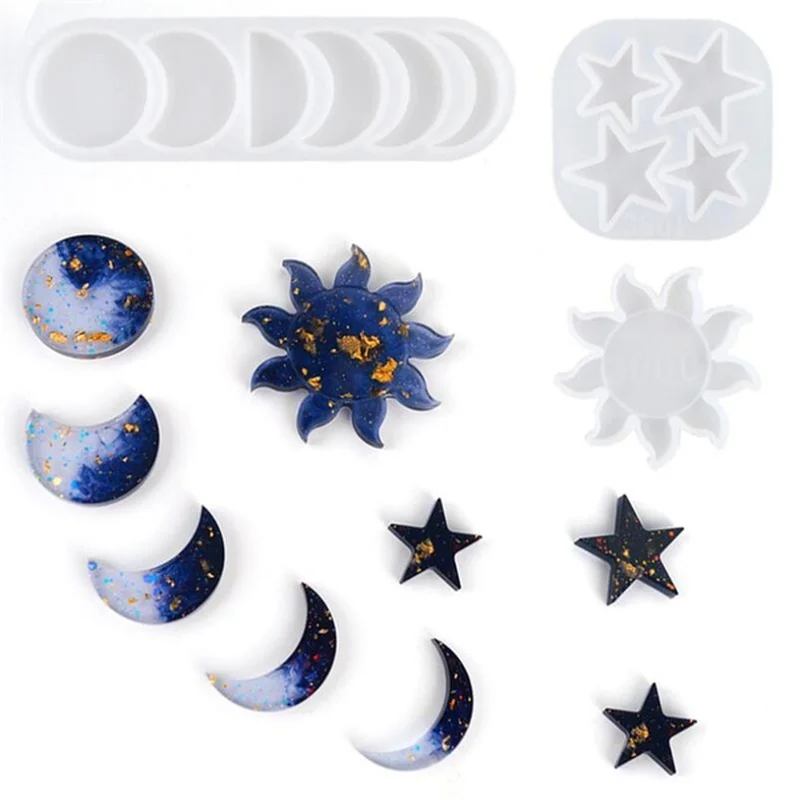 Nueva moda estrella sol Luna moldes de resina de silicona adornos de joyería DIY molde hecho a mano Moldes de resina Epoxy molde de silicona