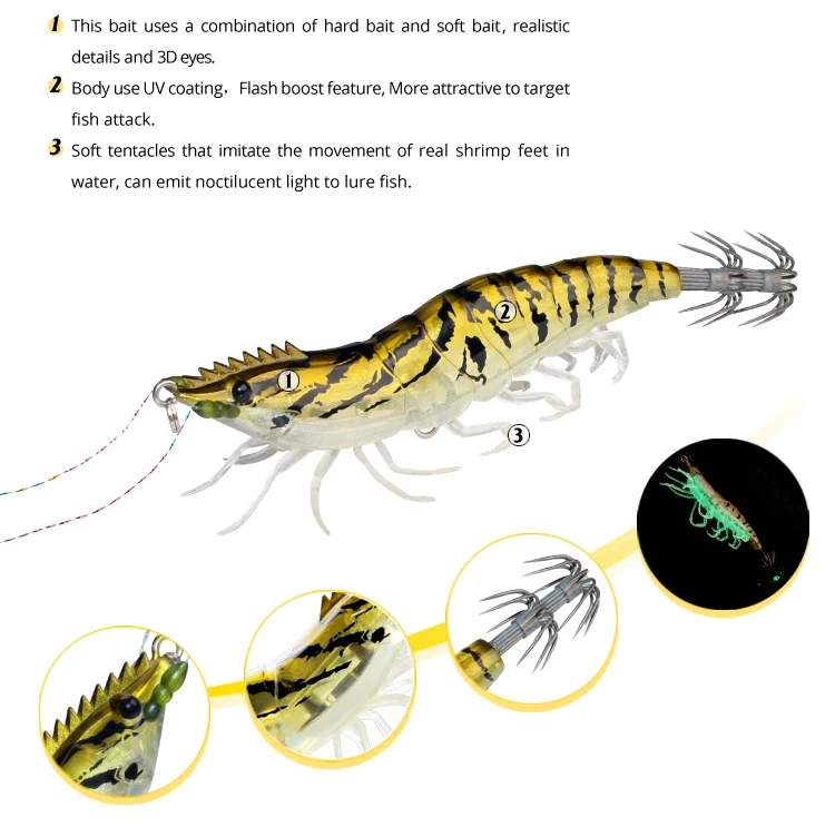 Nueva plantilla luminosa de calamar, camarones de madera, 10g/15g, pulpo que se hunde, Egi Wobbler, cebo duro Artificial, anzuelo de sepia, aparejos de pesca de mar