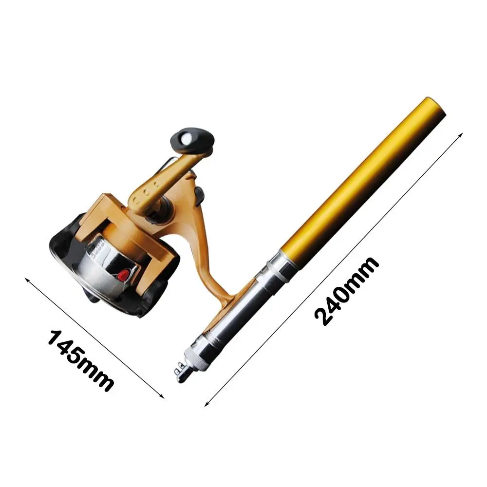 Package size: 240 * 145mm(9.45 * 5.71in) You can enjoy fishing soon with this prepared fishing reel and rod combo. Only 8.0in in collapsed length to fit in your pocket or fishing tackle. Glass steel fiber rod, solid and strong, free to fight with big game fish. You will be surprise by this mini fishing reel and rod kit.
