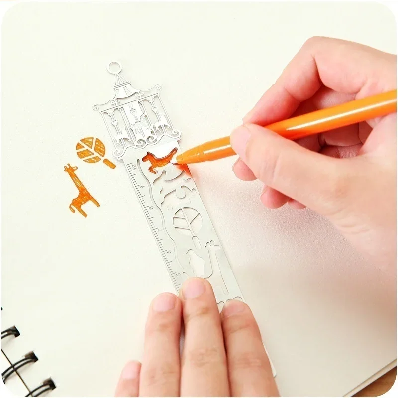 Nueva regla de 2 uds., patrón de dibujos animados, registro de Metal, plantillas diarias para regla acolchada, marcapáginas multifunción, herramienta de cuenta de mano hueca