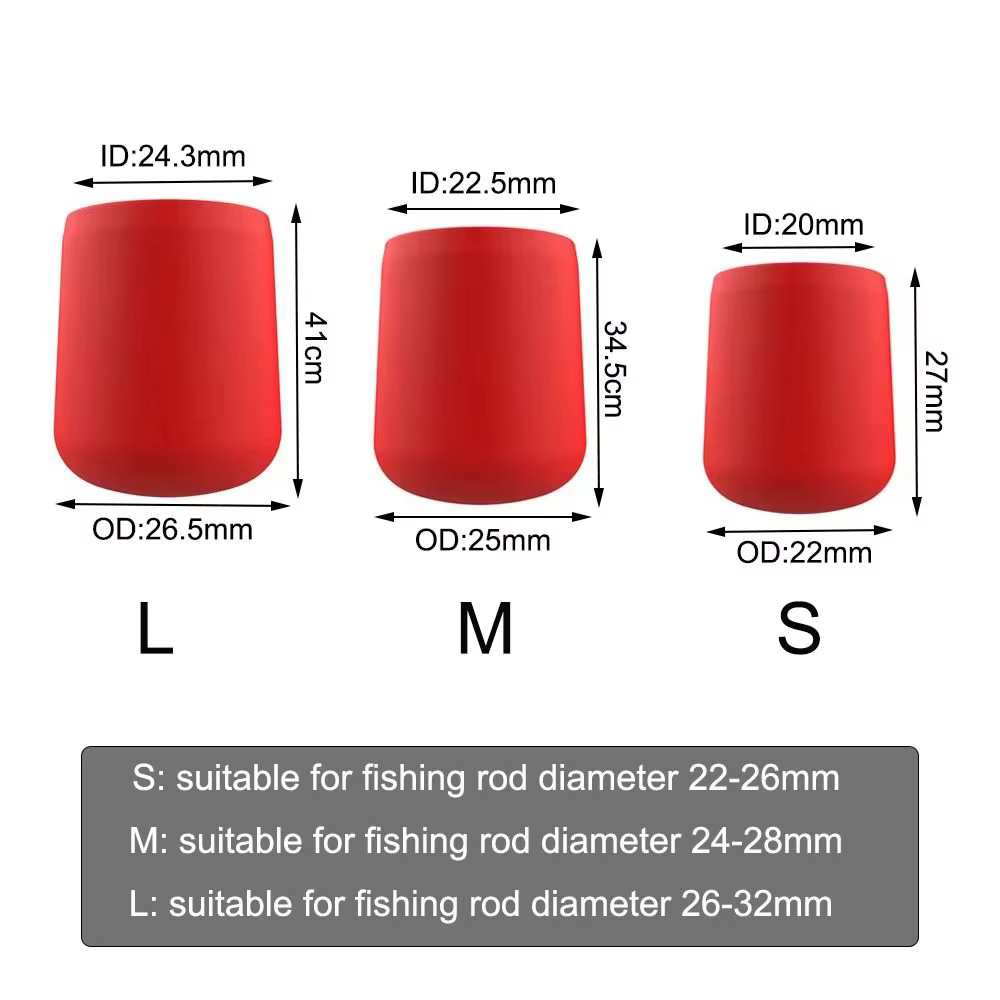 Brand new and high quality Made of high quality silicone material, durable and functional A variety of colors and sizes are available to meet different needs Soft silicone material, comfortable to touch, not hurt the fishing rod Easy to install, strong elasticity, not easy to fall off Bottom with drainage holes, breathable Specification: Material: Silicone Color: (As Pictures Show) Size: Approx (As Pictures Show) S: Inner diameter 20mm,Outder diameter 22mm, height 26.5mm M: Inner diameter 22.5mm,Outder diameter 25mm, height 34.5mm L: Inner diameter 24.3mm,Outder diameter 26.5mm, height 41mm Package includes:4pcs x Fishing Rod End Cap Note: 1.The real color of the item may be slightly different from the pictures shown on website caused by many factors such as brightness of your monitor and light brightness. 2.Please allow slight manual measurement deviation for the data.