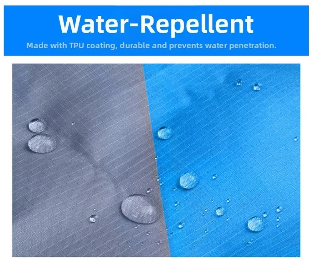 Quantity:1set Made of 210D Oxford cloth with unique waterproof processing, protects you and your belongings against dampness. Can also be used as a sun / rain canopy by fixing the mat through the noose. Come with a drawstring bag, folding into compact size for convenient carry. Great for camping, beach, picnic, tent,etc.