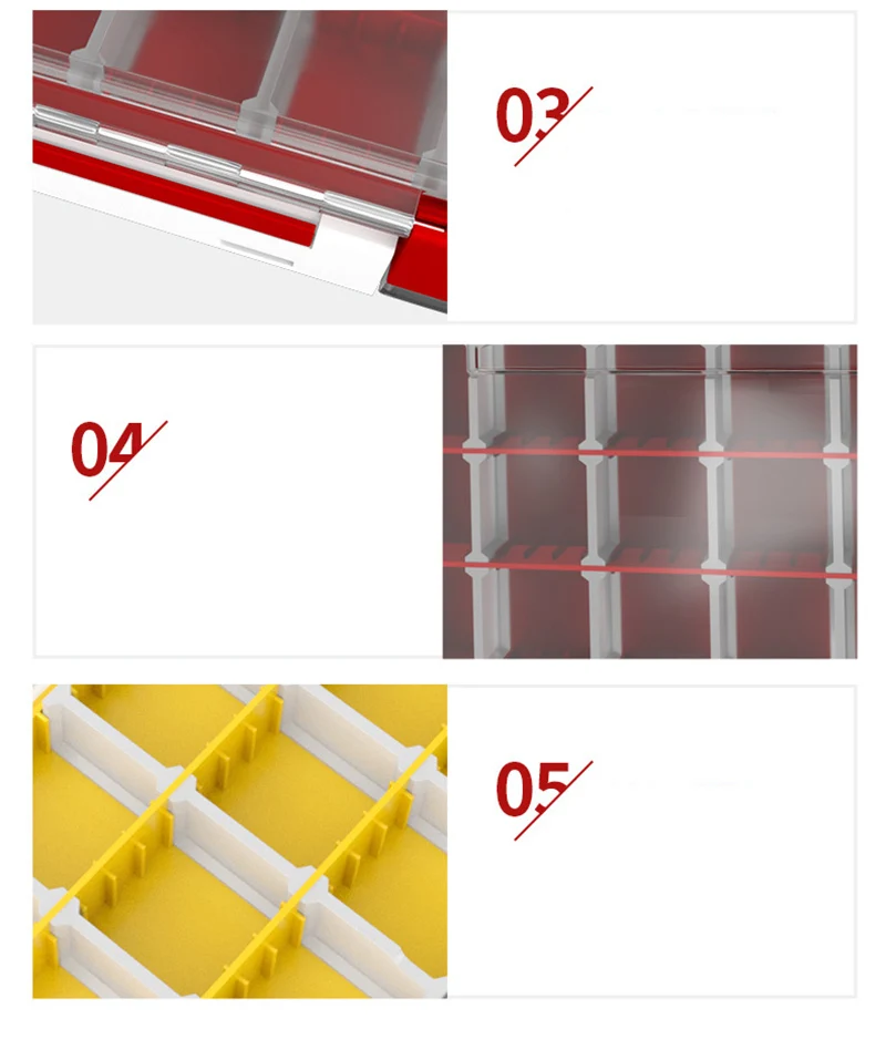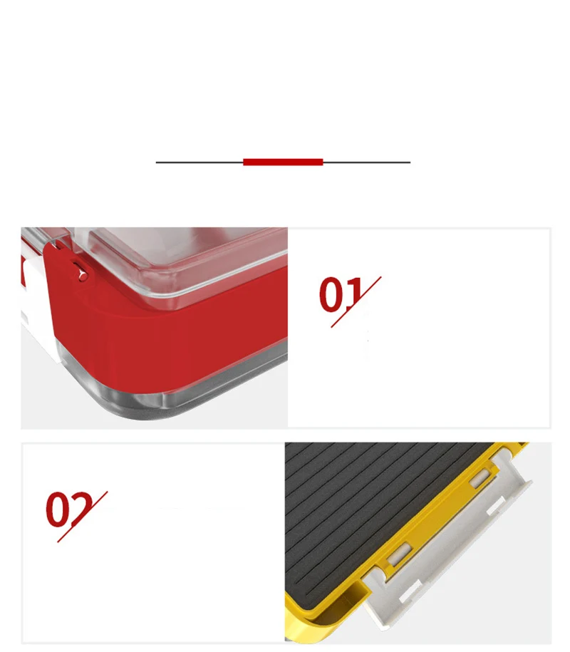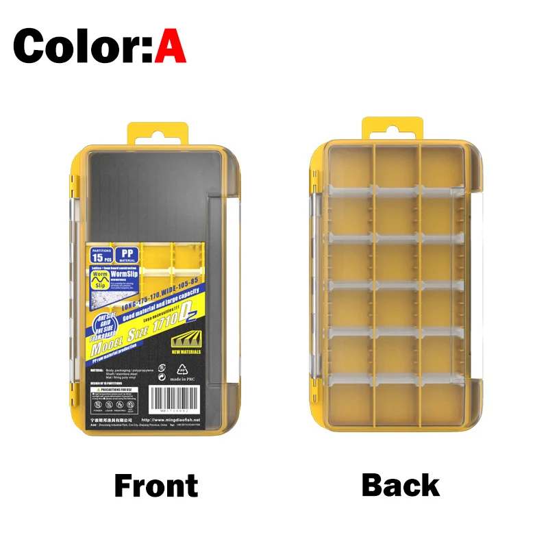 Descripción:Nuevas cajas de aparejos de pesca de doble cara, caja de cabeza de plantilla de señuelo de pesca, caja de almacenamiento de aparejos de cebo de pesca para cuchillas Spinner