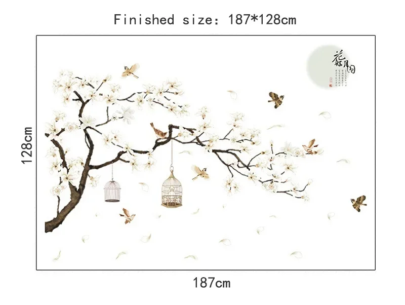 Pegatinas de pared de árbol, pájaros, flores, decoración del hogar, papeles pintados para sala de estar, dormitorio, decoración de habitaciones de vinilo DIYDescripción del producto: