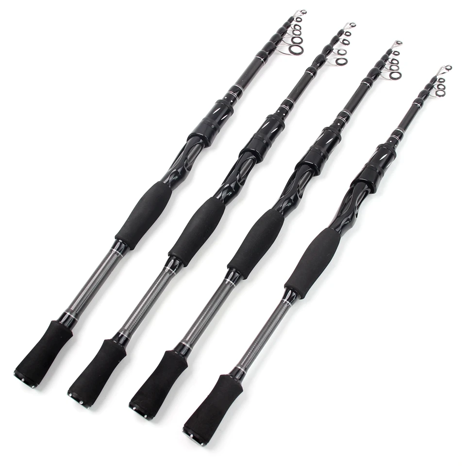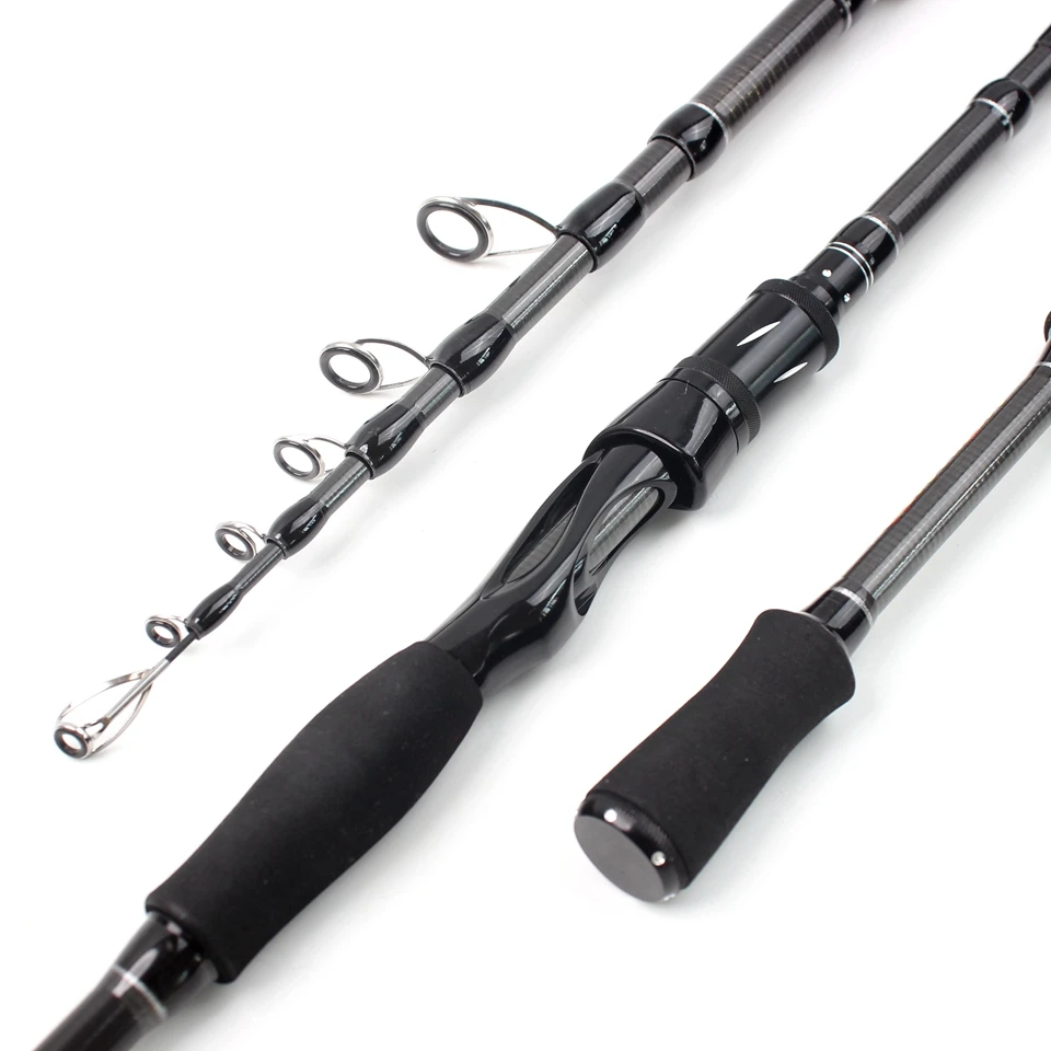 Nuevo 1,8 m 2,1 m 2,4 m 2,7 m caña de pescar de carbono 7-28g peso de señuelo caña giratoria telescópica caña de pescar de viaje portátil