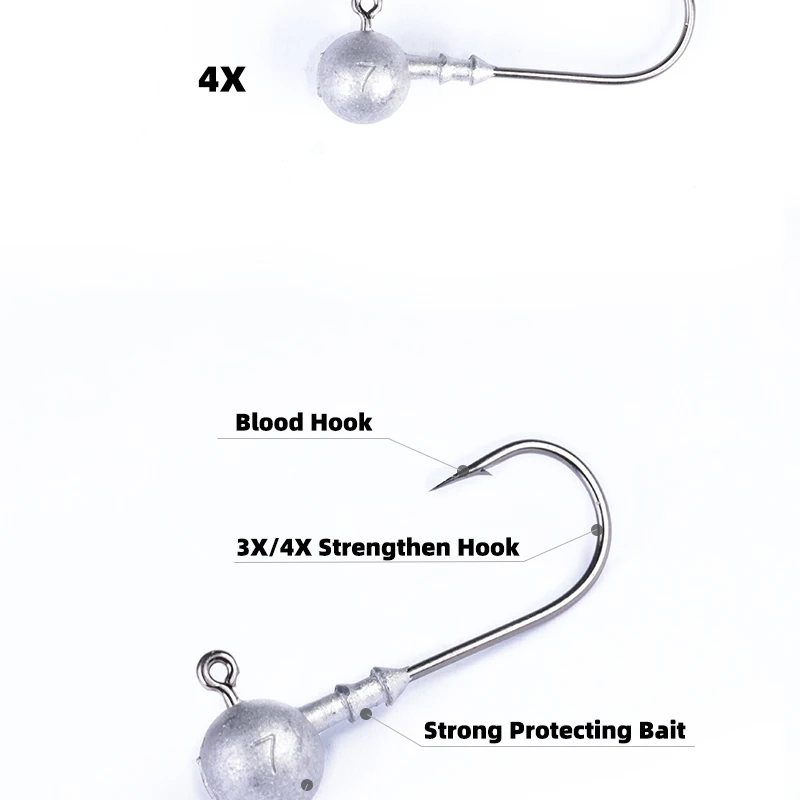 Descripción: Nuevo 10 Uds. Gancho de cabeza de plantilla fuerte 3X/4X fundición a presión gancho de sangre para pesca señuelo de cabeza cebo duro gancho de plantilla de gusano suave para pescar