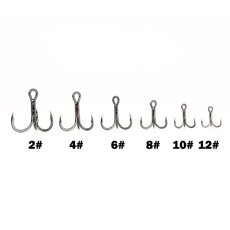 Descripción :Nuevo 10 Uds 4x fuerte súper afilado redondo triple gancho antioxidante acero rico en carbono 2 4 6 8# Anzuelos triples de mar, aparejos de pesca