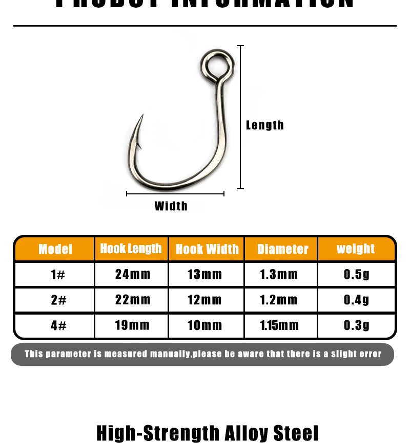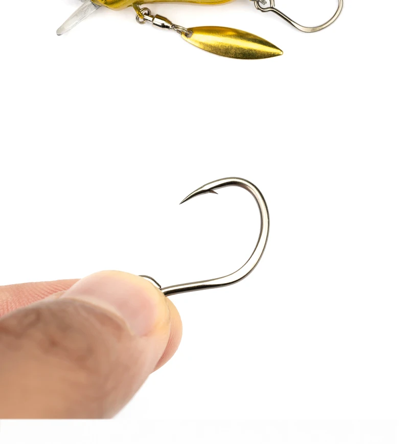 Descripción :Nuevo 10 Uds anzuelo de repuesto para señuelo de pesca 5X fortalecer un solo 33 anzuelos de pesca en línea ojo grande tamaño 1 2 4 aparejos de acero con alto contenido de carbono