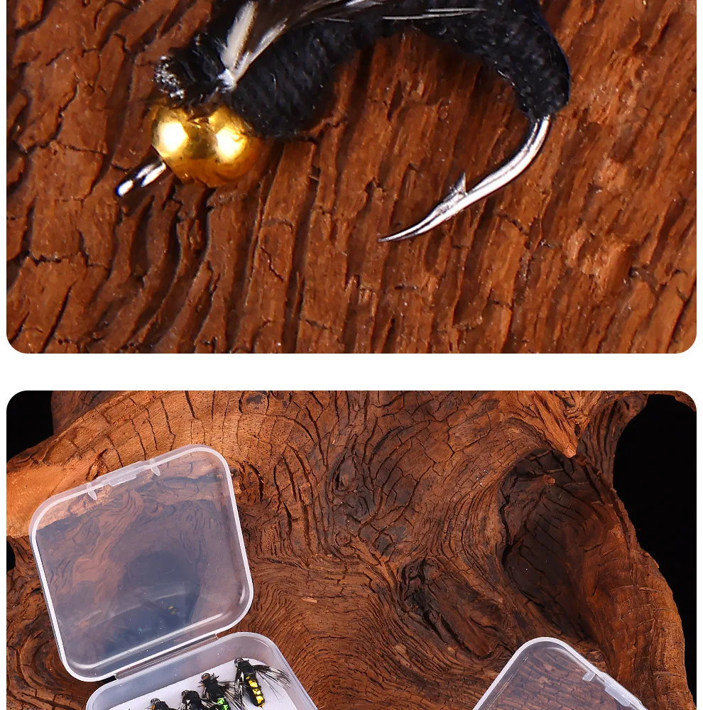 Nuevo 10 Uds. Señuelos de pesca con mosca húmeda que se hunden insectos artificiales gancho Mosquito Micro moscas cebo lubina trucha señuelos aparejos con caja