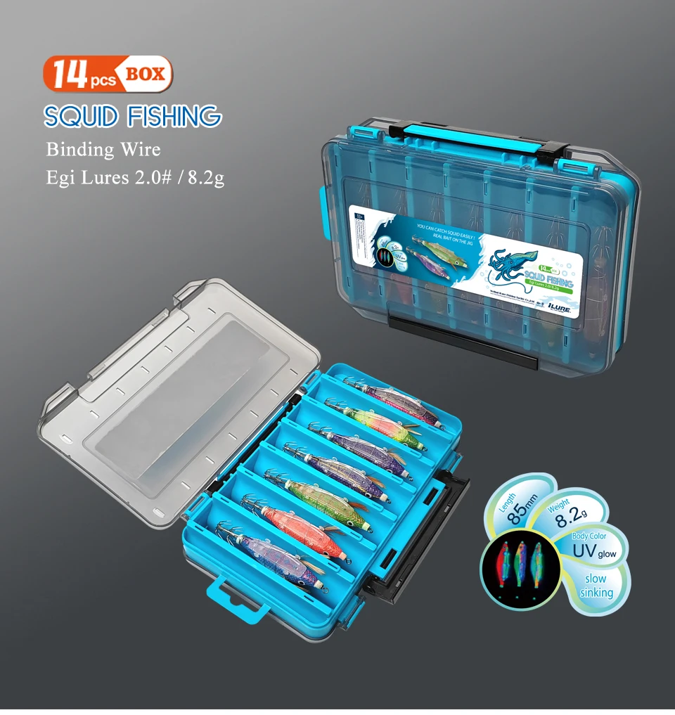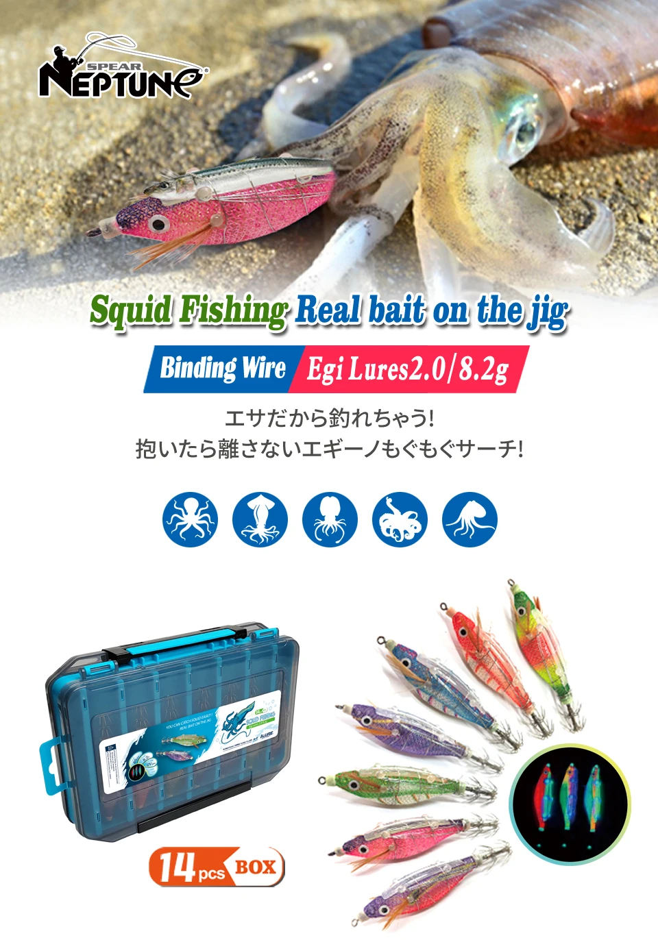 Nuevo 14 unids/set Webfoot pulpo Egi señuelo de pesca calamar Jig Egi gancho Artificial incluido luminoso sepia cebo aparejos de mar