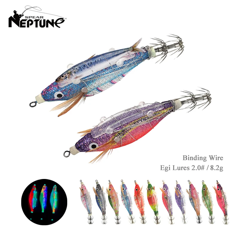 Nuevo 2 # 8,2g Webfoot pulpo Egi calamar Jig señuelo incluido Artificial luminoso sepia cebo duro mar calamar gancho para herramientas de pesca