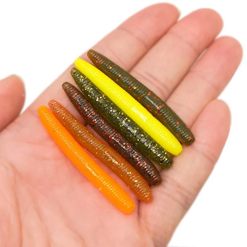 Descripción :Nuevo 20 Uds. Señuelos blandos de pesca 5cm 1,36g cebos de gusano artificiales Señuelos de pesca de silicona Crankbait aparejos de pesca para lubina