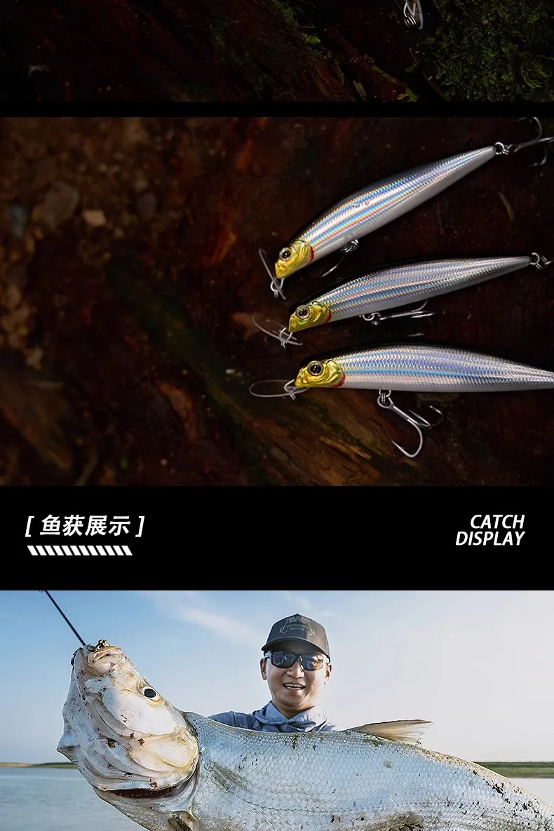 Nuevo 2025 EWE CJYH señuelo de pesca tipo lápiz de pececillo hundido de fundición larga 14,5g/18g/21g/24g deflector plegable Artificial cebo falso para lubina