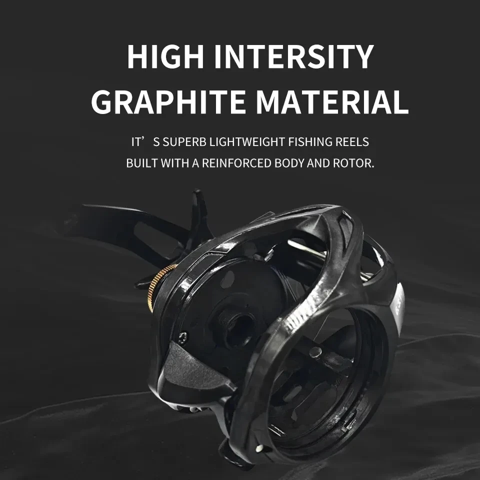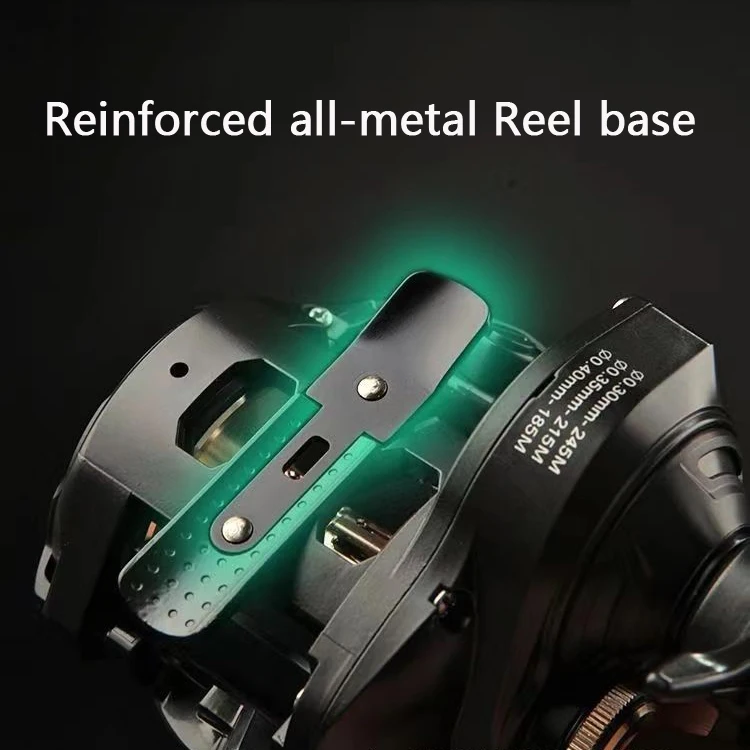 El carrete de metal ancho y profundo le brinda una mayor distancia de lanzamiento