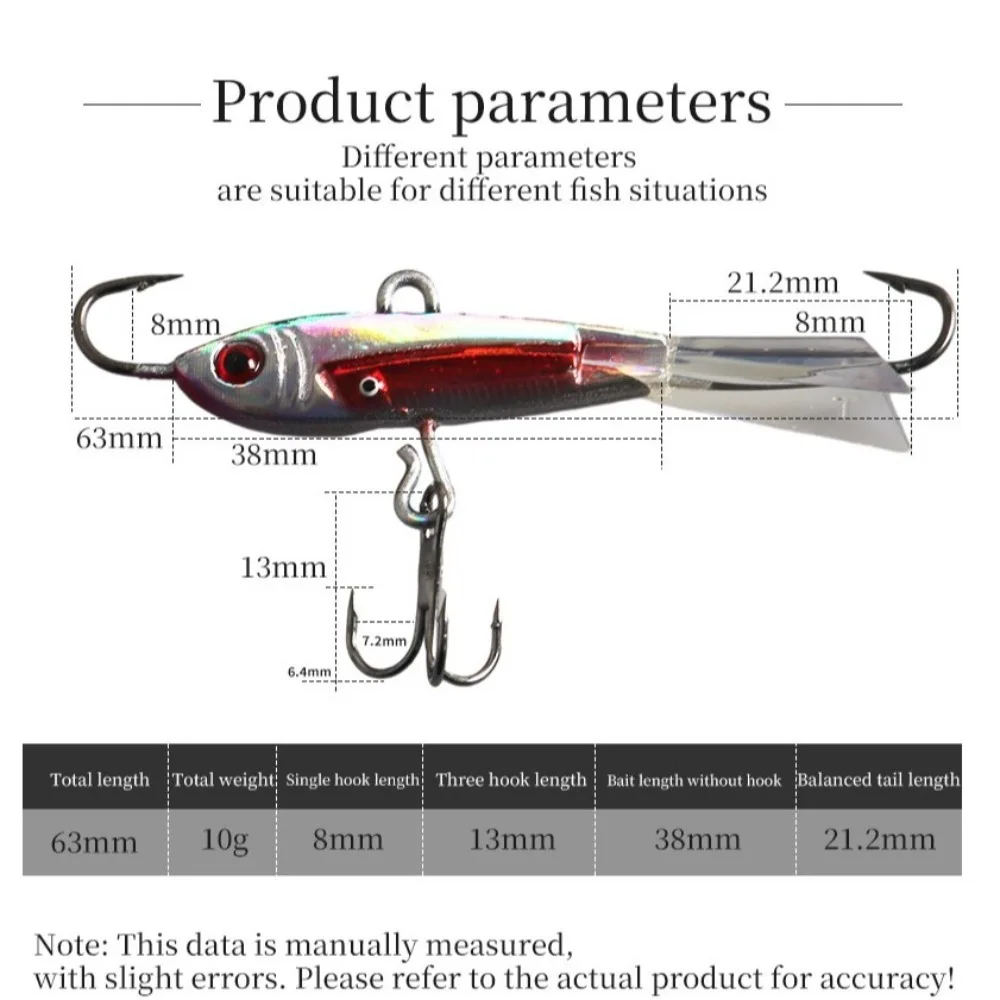 Señuelos de Metal con cuchara de 63mm y 10g, Señuelos de pesca en hielo, cebo duro de marca de agua dulce