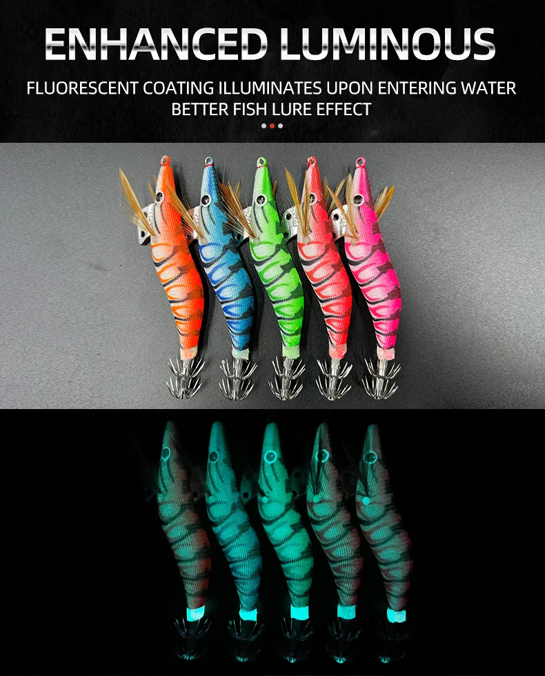 Señuelo luminoso de madera para camarones, plomo, anzuelo de plantilla de calamar, señuelo de pesca Artificial, cebo de pesca duro