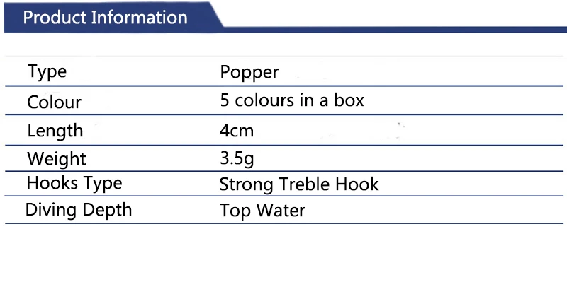 Descripción :Nuevo 5 uds Mini Popper 3.5g 4cm juego de Señuelos de Pesca con caja cebos duros Wobblers Señuelos flotantes aparejos de pesca de carpa Artificial