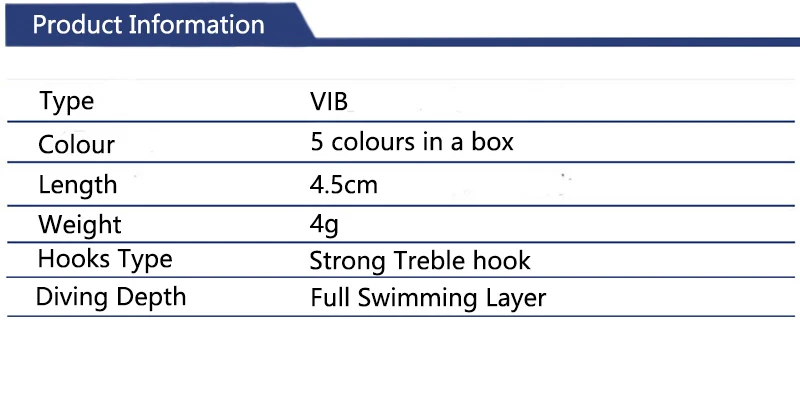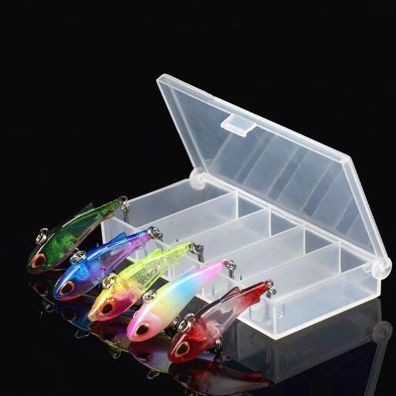 Descripción :Nuevo 5 uds Mini VIB 4,5cm 4g juego de Señuelos de Pesca con caja cebos duros Wobblers señuelos hundidos aparejos de pesca de carpa Artificial