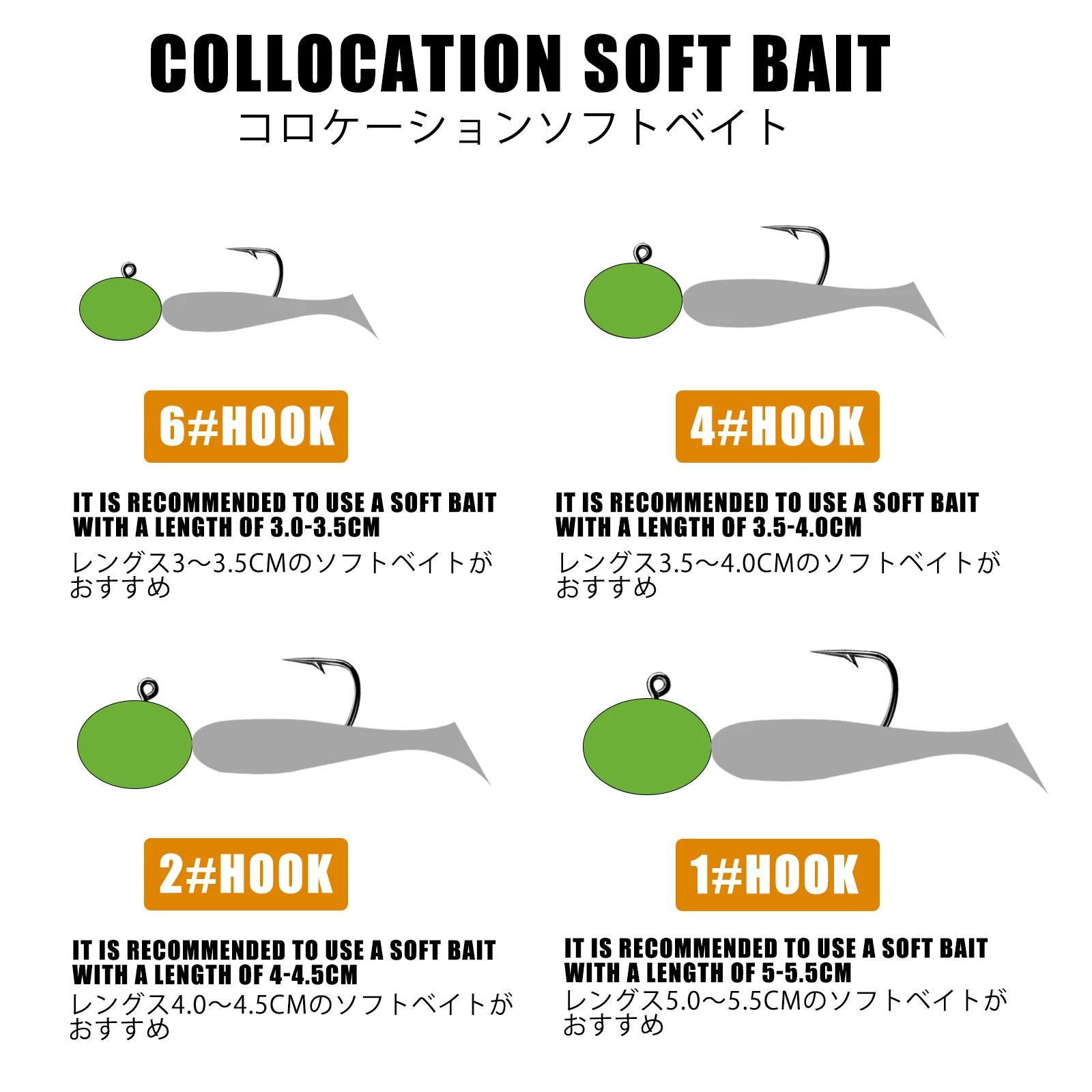 Tipo de gancho: Gancho AJING/Gancho ROCKFISH/Gancho Jig con cabeza de tungsteno