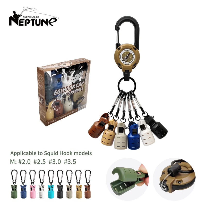 Nuevo 6 uds M # Protector de plantilla de calamar con hebilla retráctil, mosquetón, pie web, pulpo, Egi, tapa de anzuelo, cebo de calamar, máscara, aparejos de pesca