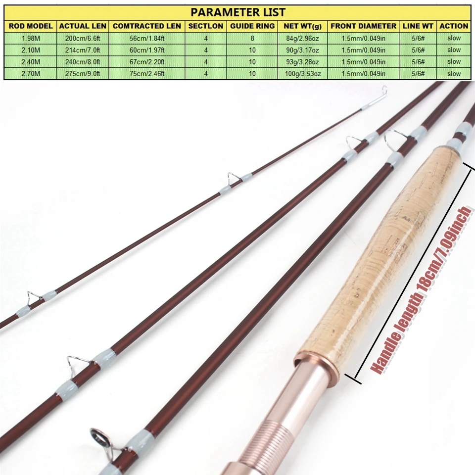 NUEVO 6.6FT 7FT4 Sección 5/6 # Caña de pescar con mosca, portátil, de carbono, ultraligera, de acción lenta, mango de corcho, señuelo, productos de pesca, corriente