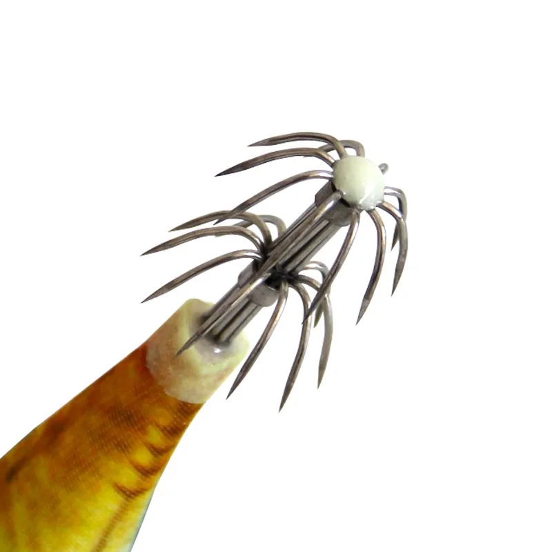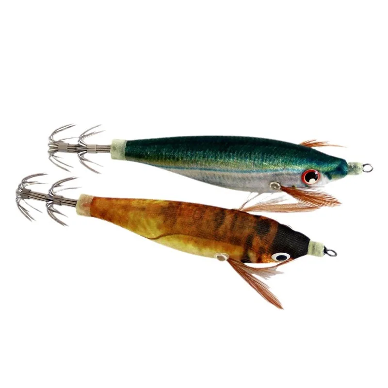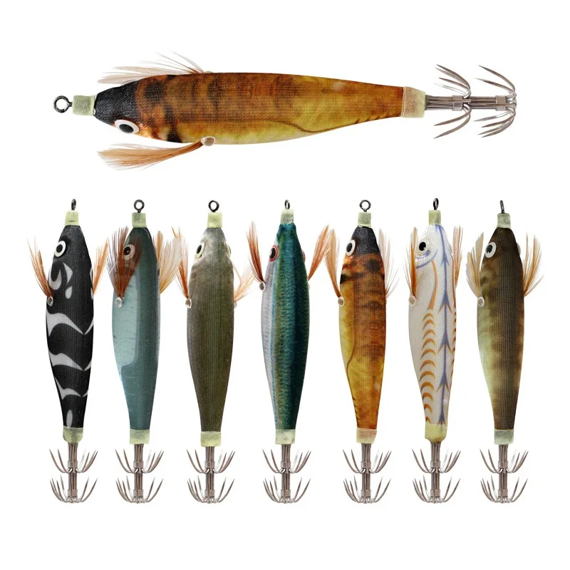 Nuevo anzuelo de calamar, señuelo de pesca luminoso de 10cm, 9g, señuelos artificiales de pulpo falso, camarones de madera, sepia, cebo duro, aparejos de plantillas de mar
