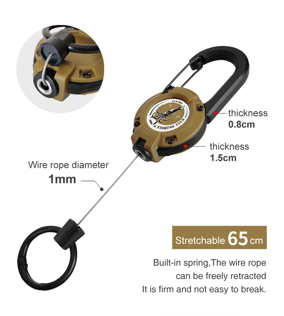 Nuevo aparejo de pesca con hebilla retráctil, mosquetón de alambre de acero, cuerda de retención, herramienta antipérdida para exteriores, accesorios marinos de agua dulce